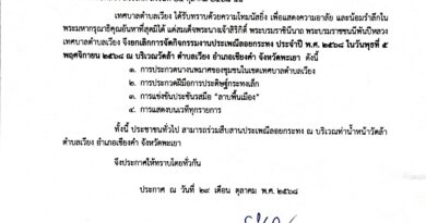 ประกาศเทศบาลตำบลเวียง เรื่อง ยกเลิกการจัดกิจกรรมงานประเพณีลอยกระทง ประจำปี พ.ศ. ๒๕๖๘