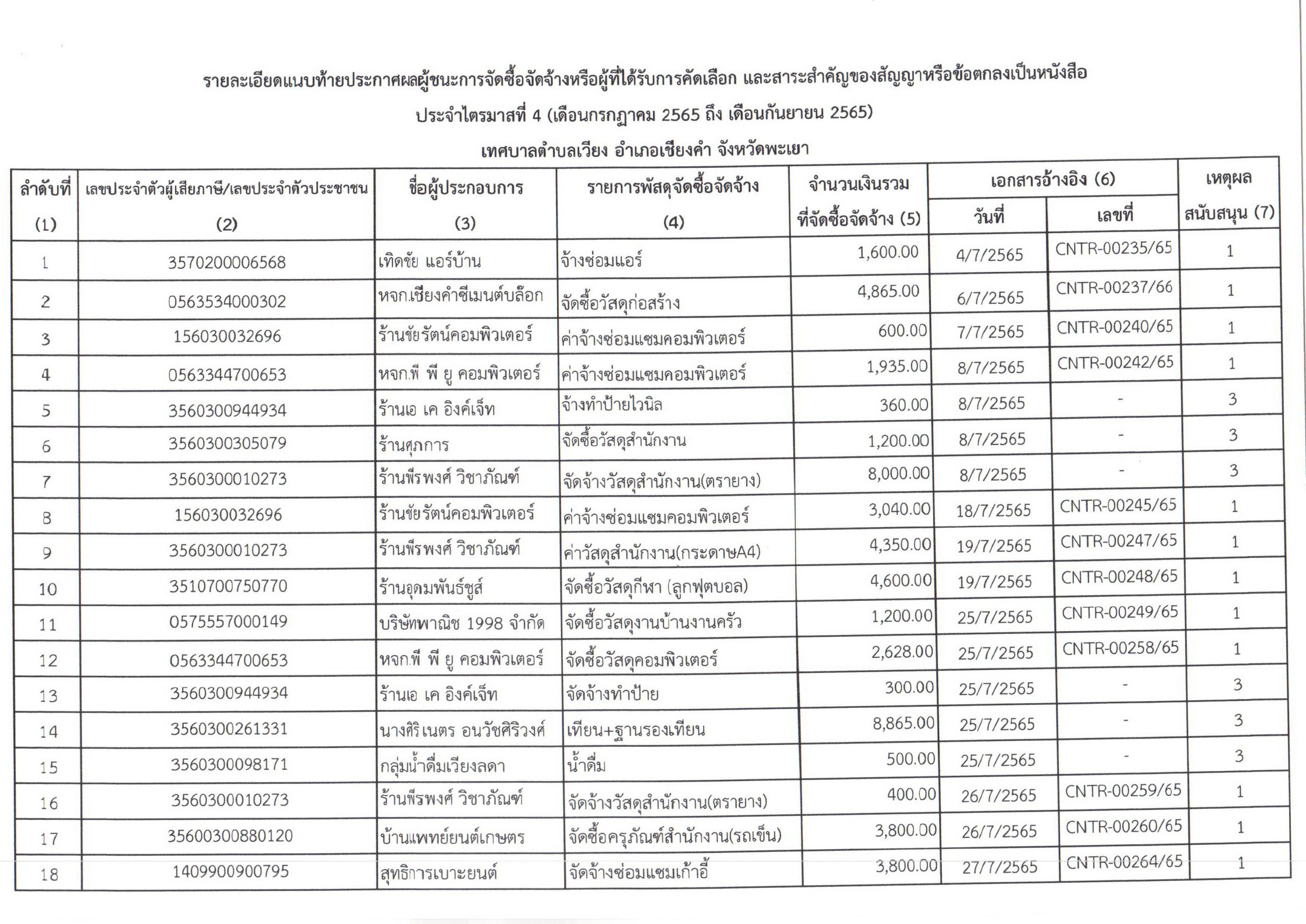 สรุปผลการจัดซื้อจัดจ้าง ประจำปีงบประมาณ ๒๕๖๔