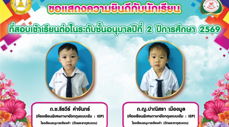 ข่าวประชาสัมพันธ์ สำนักงานเทศบาลตำบลเวียง ขอแสดงความยินดีกับนักเรียน ที่สอบเข้าเรียนต่อในระดับชั้นอนุบาลปีที่ 2 ปีการศึกษา 2569 16 มีนาคม 2569 ชนินทร ธรรมศิลป์ อ่านต่อ