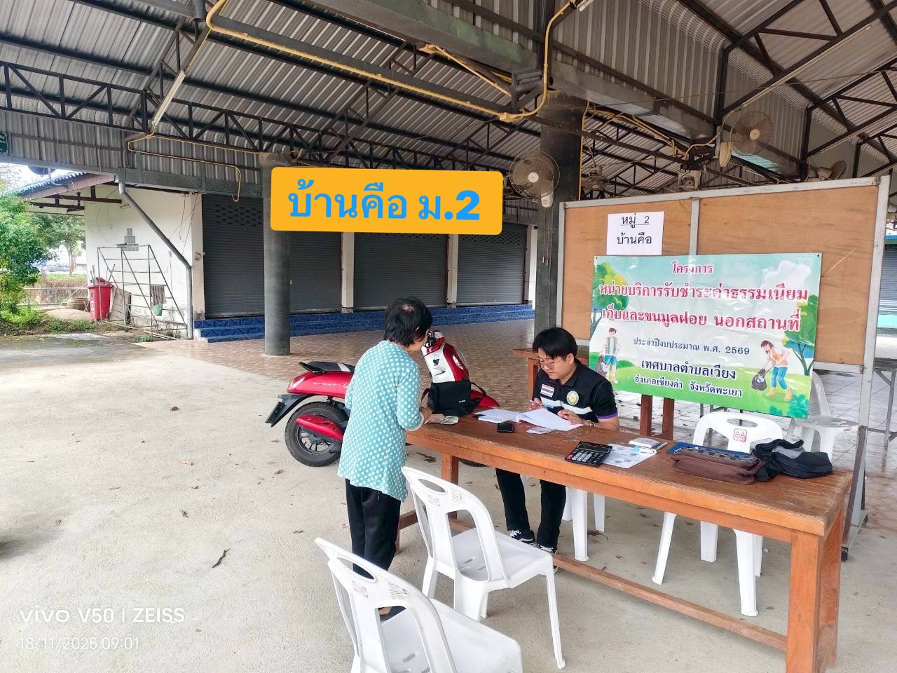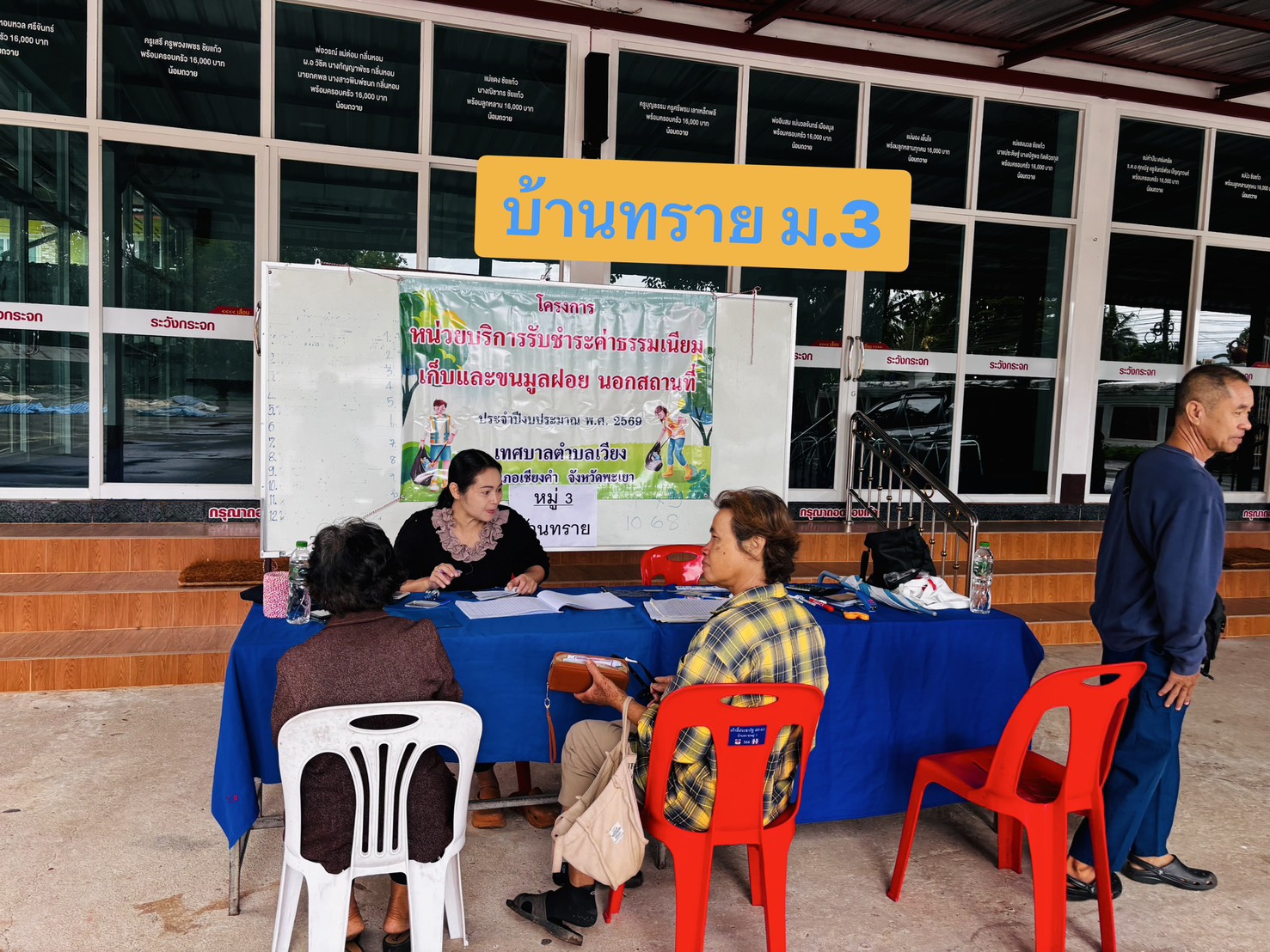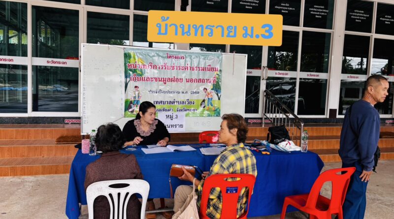 งานจัดเก็บรายได้ กองคลัง เทศบาลตำบลเวียง ออกให้บริการจัดเก็บค่าธรรมเนียมเก็บและขนขยะมูลฝอยนอกสถานที่