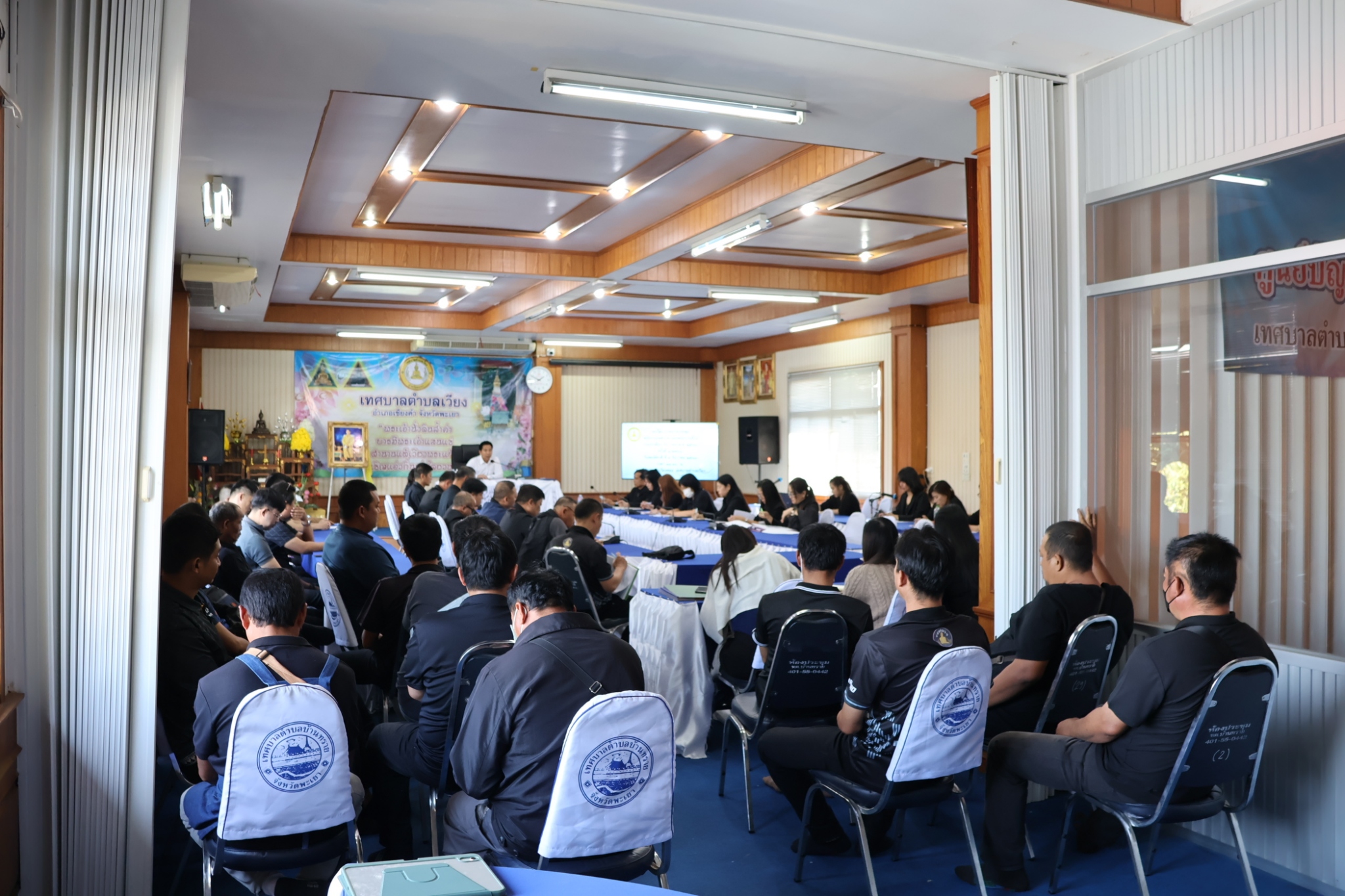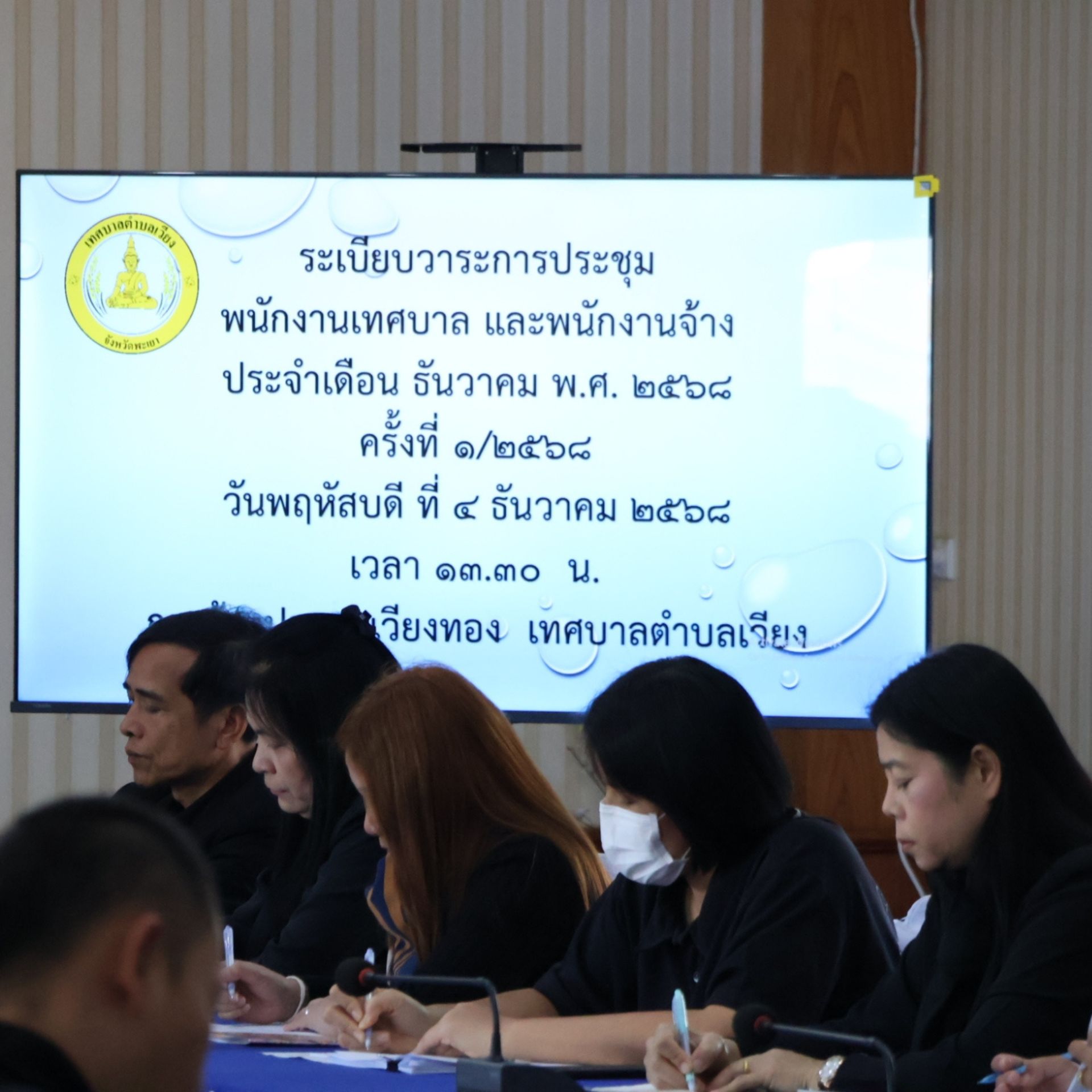 นายสุทธิพงษ์ วงศนันท์ พร้อมด้วยคณะผู้บริหาร ปลัดเทศบาล หัวหน้าสำนักปลัดเทศบาล ผู้อำนวยการกอง หัวหน้าฝ่าย และข้าราชการ พนักงานลูกจ้างเทศบาลตำบลเวียง ร่วมประชุมประจำเดือน ธันวาคม 2568 เพื่อหาแนวทางการปฏิบัติงาน ติดตามการปฏิบัติงานของกอง/สำนัก ฝ่ายต่างๆ และมอบนโยบายในการปฏิบัติงาน เพิ่มประสิทธิภาพในการปฏิบัติงานให้มีความสะดวกรวดเร็ว ทันต่อความต้องการ และก่อเกิดประโยชน์สูงสุดต่อประชาชน