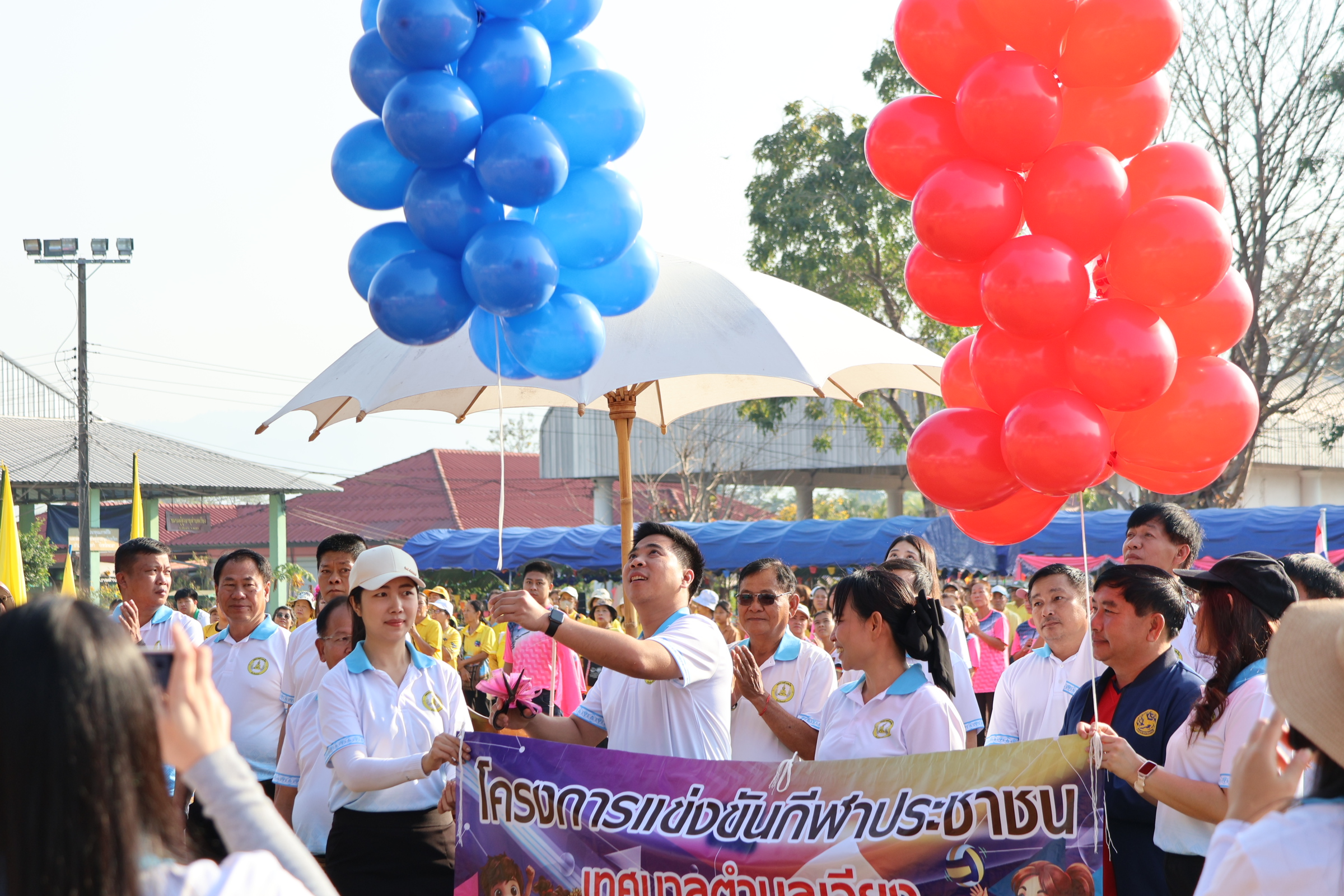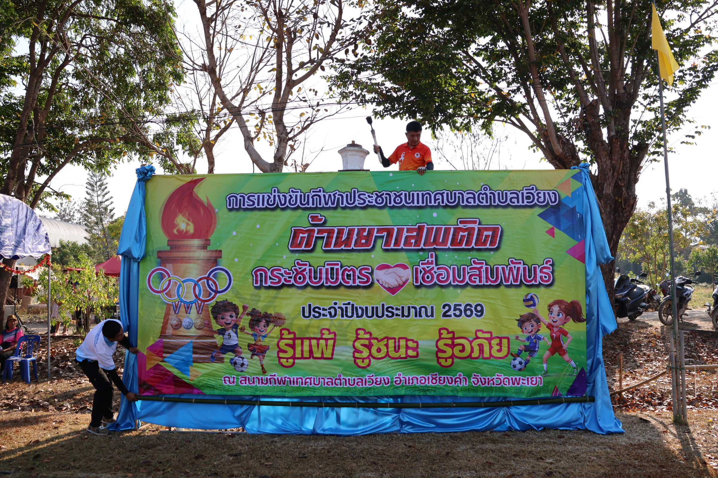 นางสาวศิรินุช จันทาพูน นายอำเภอเชียงคำ ประธานในพิธีเปิดโครงการแข่งขันกีฬาประชาชนเทศบาลตำบลเวียง ประจำปีงบประมาณ พ.ศ. 2569 พร้อมด้วยนายสุทธิพงษ์ วงศนันท์ นายกเทศมนตรีตำบลเวียง คณะผู้บริหาร สมาชิกสภา กำนันผู้ใหญ่บ้าน แขกผู้มีเกียรติ ปลัดเทศบาล พนักงานเทศบาล และพนักงานจ้างเทศบาลตำบลเวียง ร่วมโครงการฯ ณ สนามกีฬาเทศบาลตำบลเวียง อำเภอเชียงคำ จังหวัดพะเยา