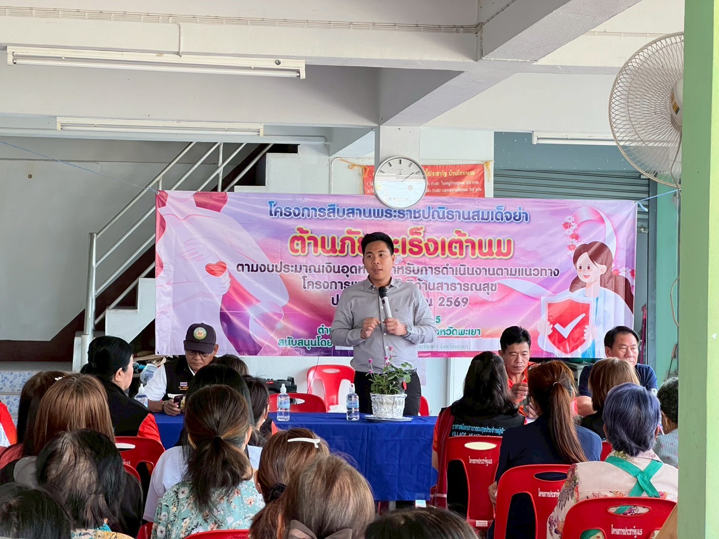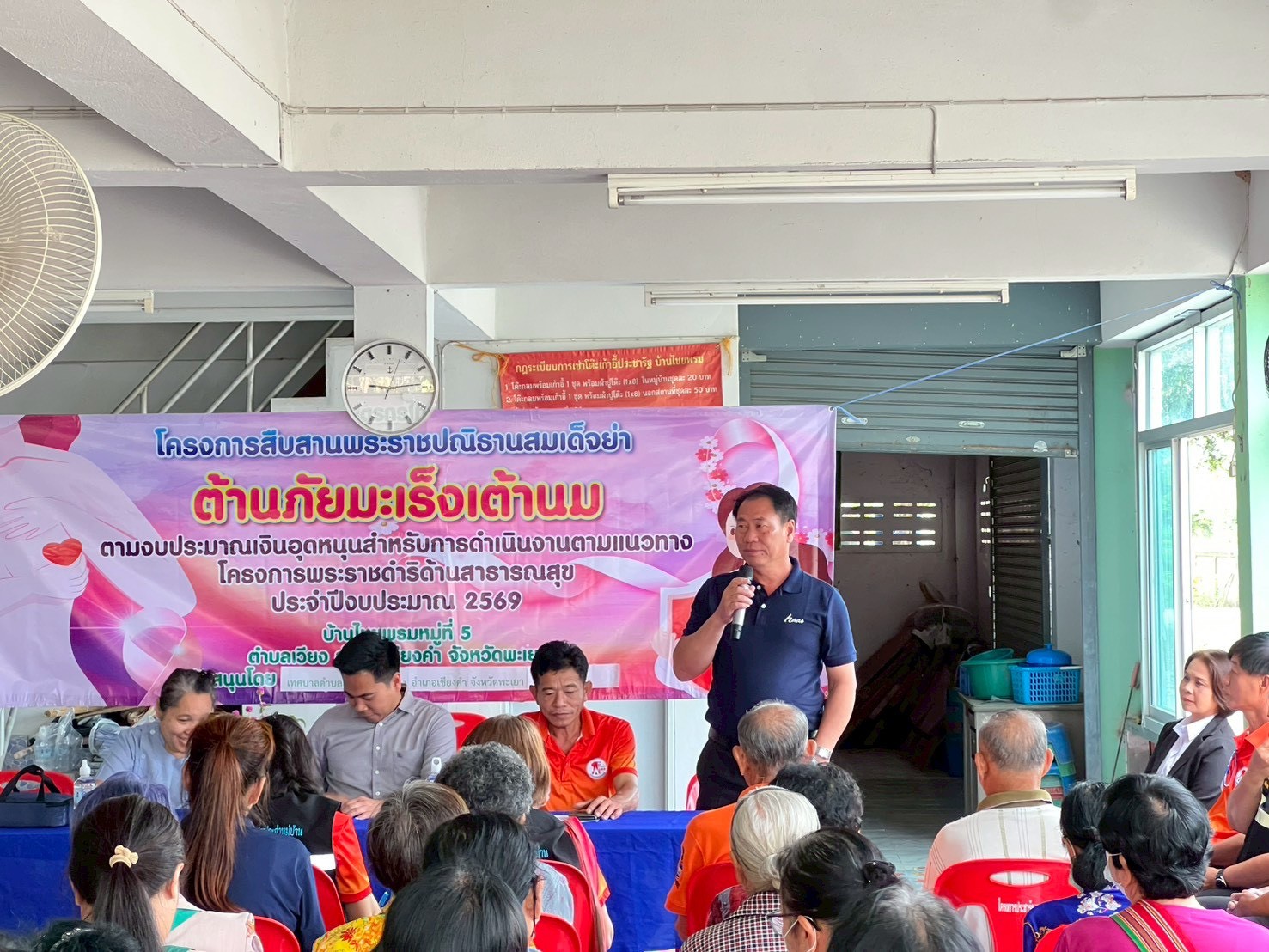 โครงการสืบสานพระราชปณิธานสมเด็จย่า ต้านภัยมะเร็งเต้านม ตามงบประมาณเงินอุดหนุนสำหรับการดำเนินงานตามแนวทางโครงการพระราชดำริด้านสาธารณสุข ประจำปีงบประมาณ 2569 ณ อาคารอเนกประสงค์บ้านไชยพรม หมู่ที่ 5 ตำบลเวียง อำเภอเชียงคำ จังหวัดพะเยา