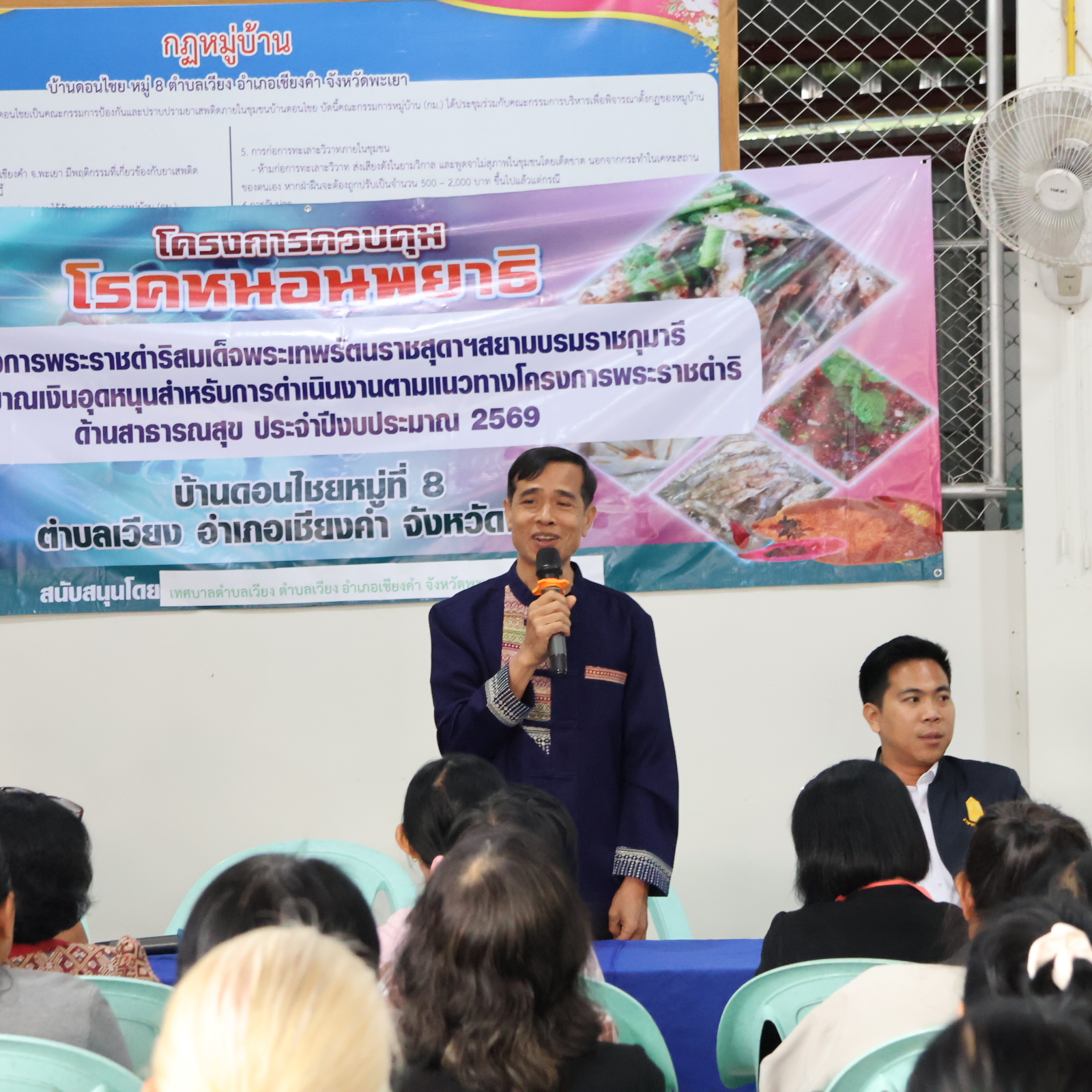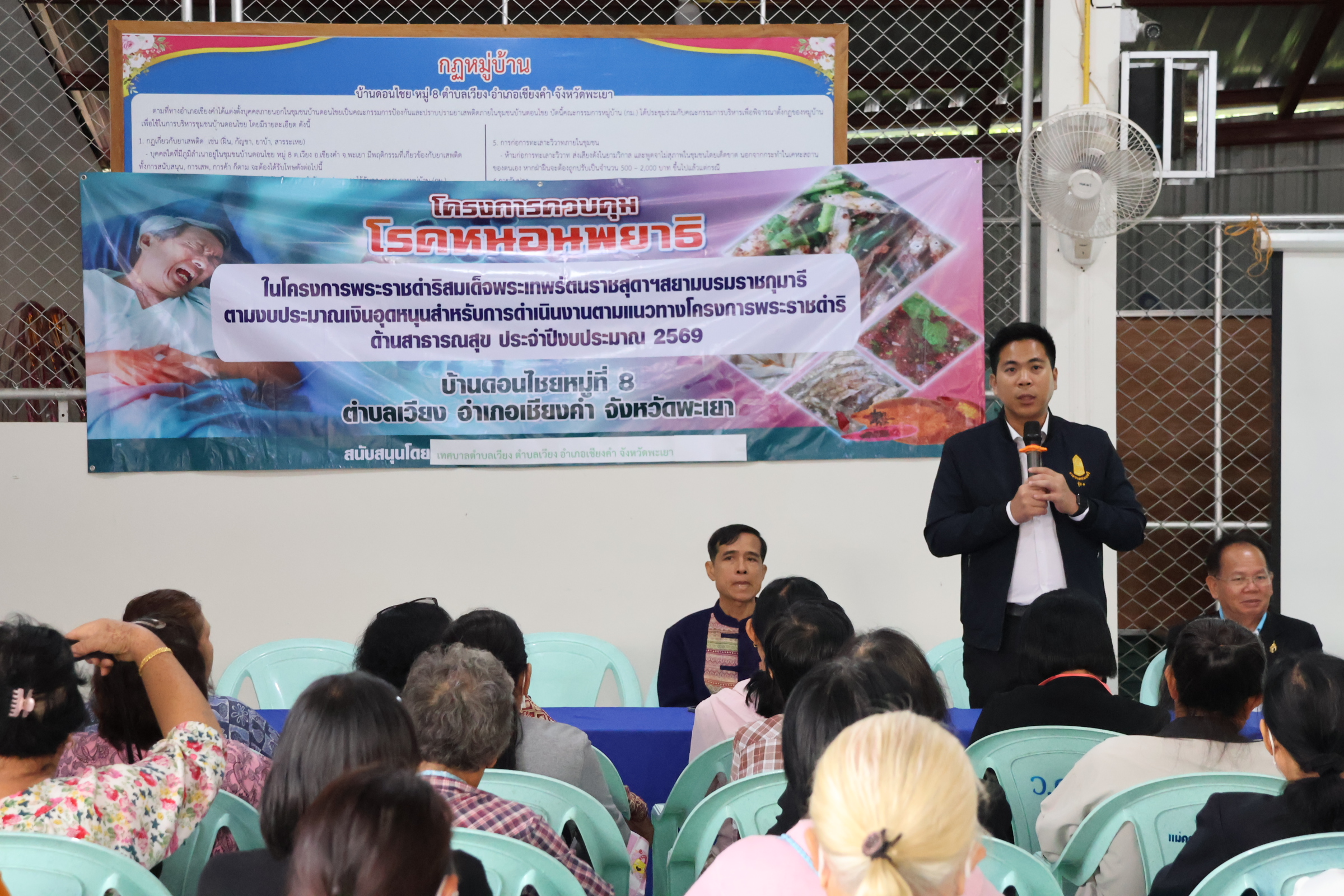 นายสุทธิพงษ์ วงศนันท์ นายกเทศมนตรีตำบลเวียง พร้อมด้วยคณะผู้บริหาร สมาชิกสภาเทศบาล ผู้อำนวยการกองสาธารณสุขและสิ่งแวดล้อม เข้าร่วมพิธีเปิดโครงการควบคุมโรคหนอนพยาธิ ตามงบประมาณเงินอุดหนุนสำหรับการดำเนินงานตามแนวทางโครงการพระราชดำริด้านสาธารณสุข ประจำปีงบประมาณ 2569 ณ อาคารอเนกประสงค์บ้านดอนไชย หมู่ที่ 8 ตำบลเวียง อำเภอเชียงคำ จังหวัดพะเยา