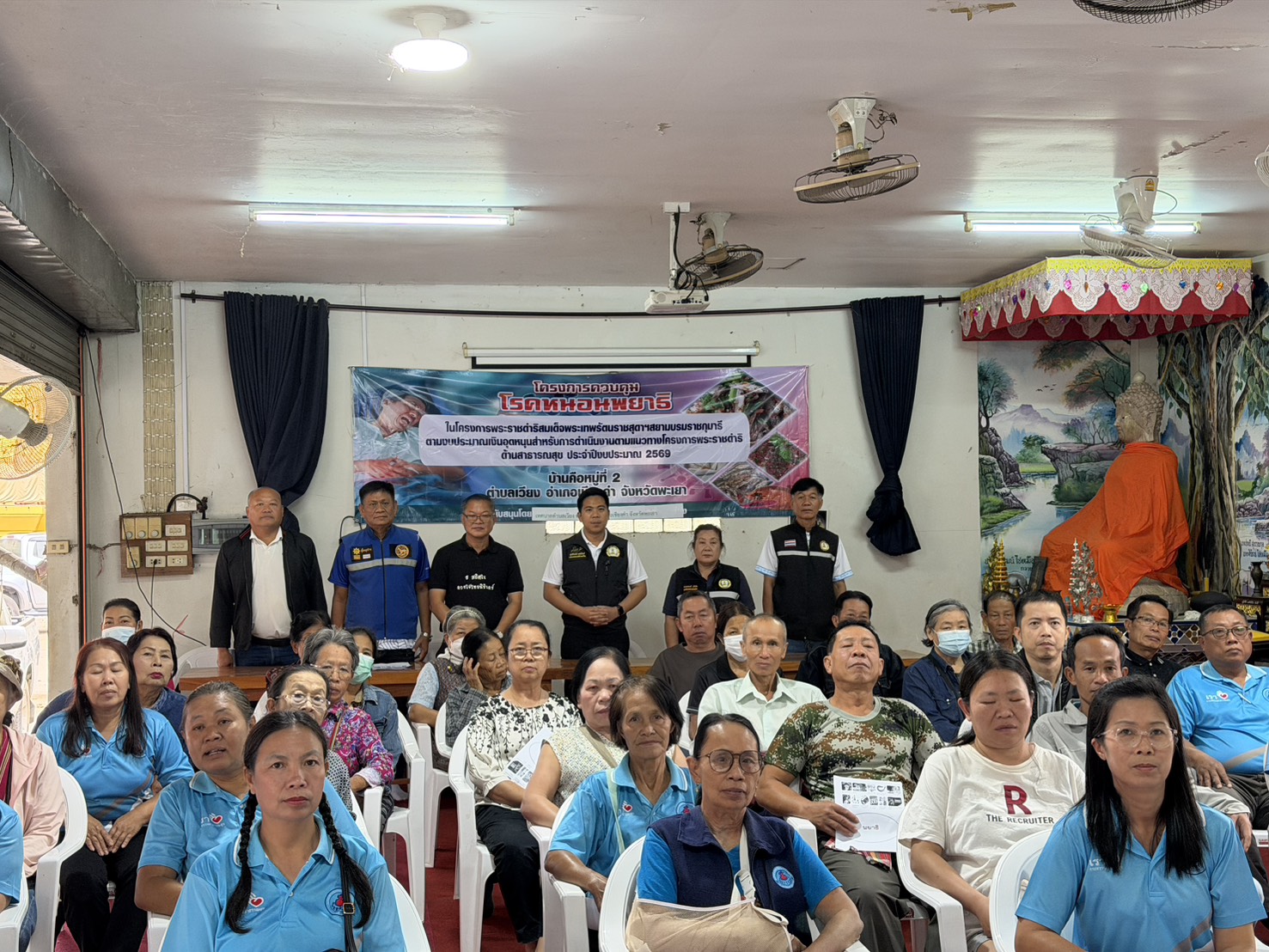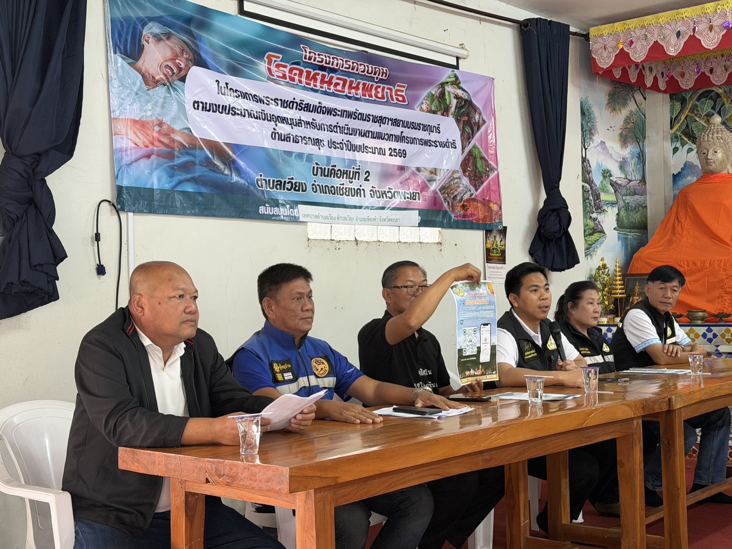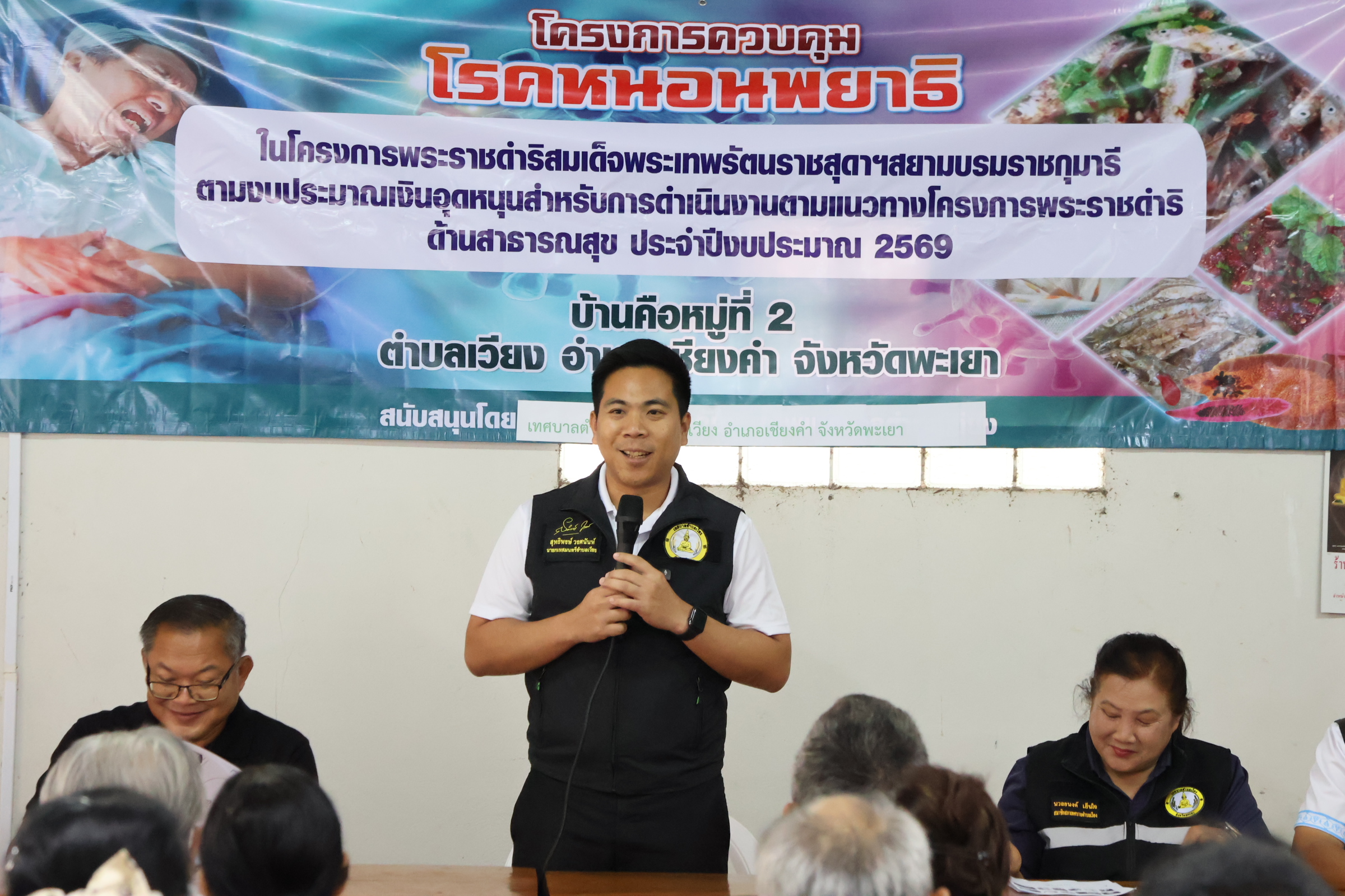 นายสุทธิพงษ์ วงศนันท์ นายกเทศมนตรีตำบลเวียง สมาชิกสภาเทศบาล ผู้อำนวยการกองสาธารณสุขและสิ่งแวดล้อม เข้าร่วมพิธีเปิดโครงการควบคุมโรคหนอนพยาธิ ตามงบประมาณเงินอุดหนุนสำหรับการดำเนินงานตามแนวทางโครงการพระราชดำริด้านสาธารณสุข ประจำปีงบประมาณ 2569 ณ อาคารอเนกประสงค์บ้านคือ หมู่ที่ 2 ตำบลเวียง อำเภอเชียงคำ จังหวัดพะเยา