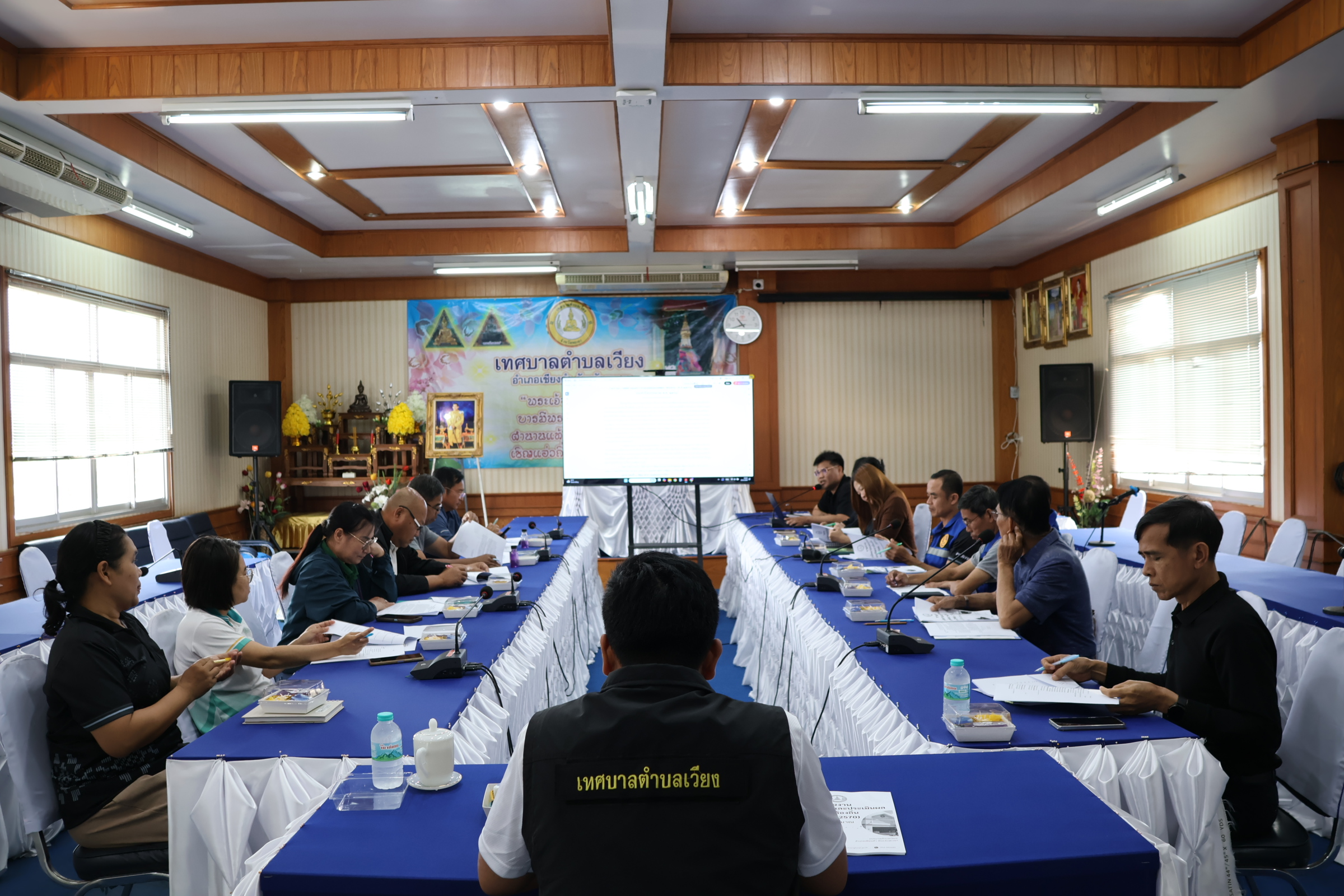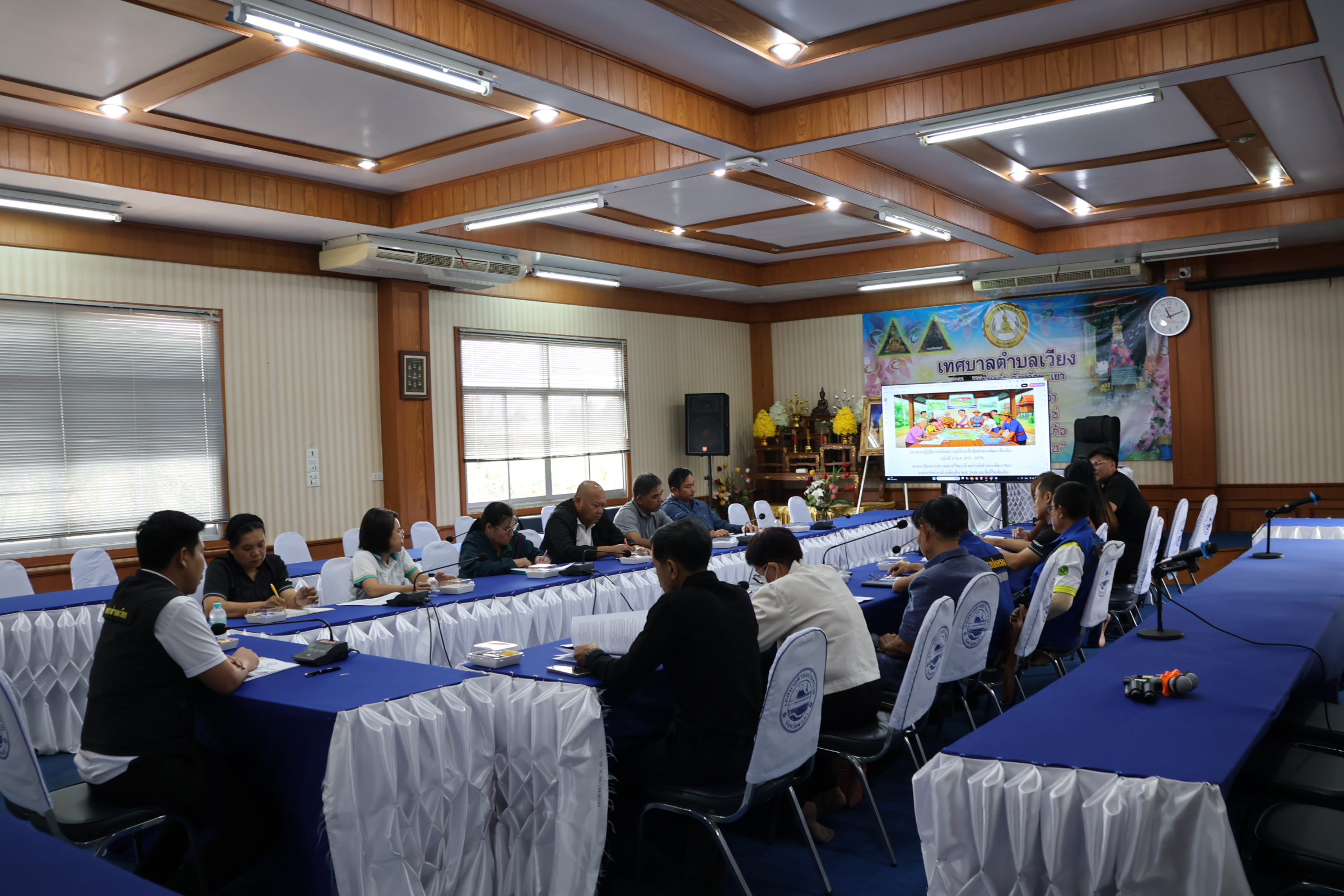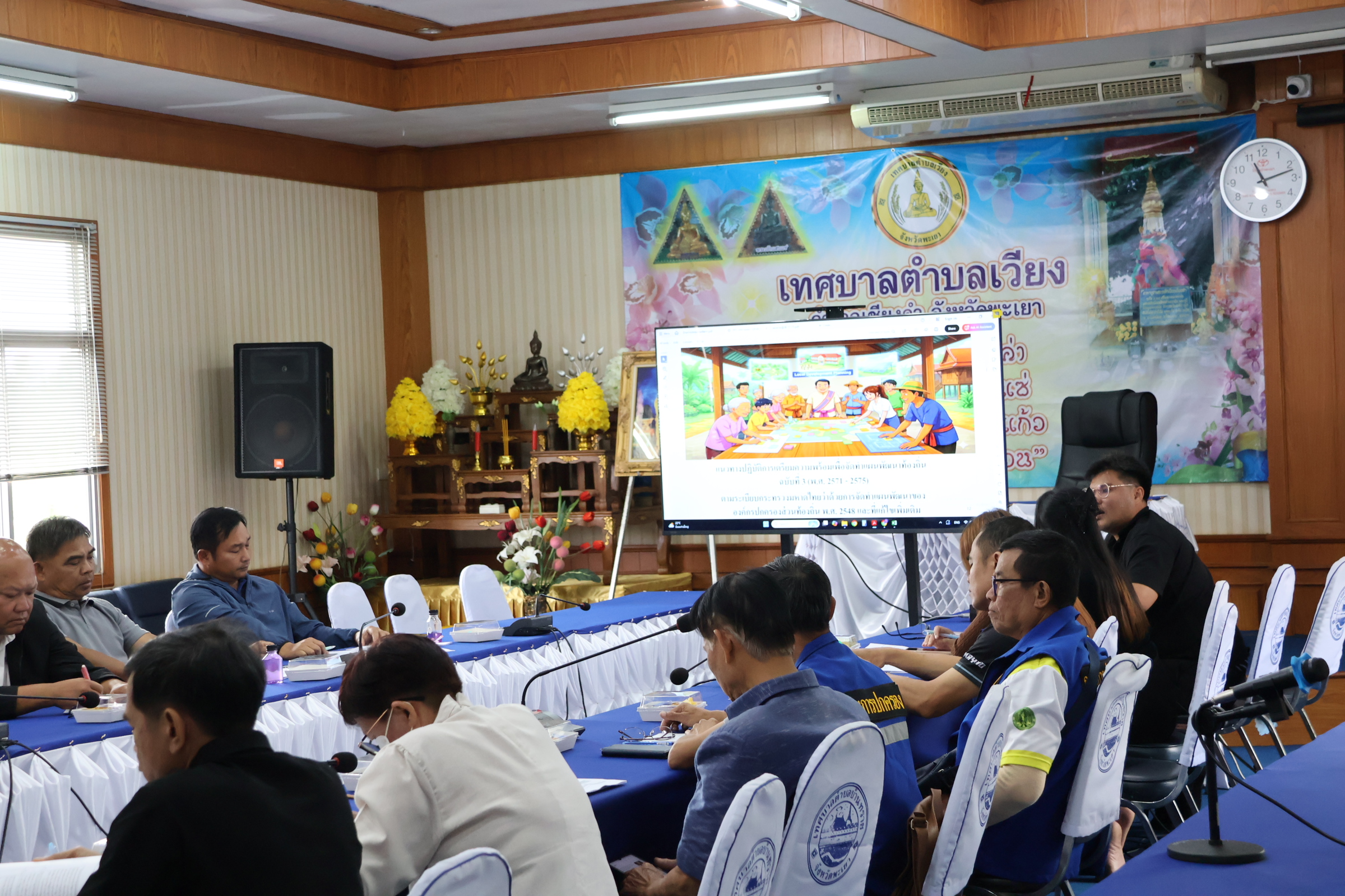 ประชุมคณะกรรมการพัฒนาเทศบาลตำบลเวียง เพื่อรับทราบรายงานผลการติดตามและประเมินผลแผนพัฒนาท้องถิ่น (พ.ศ. 2566 – 2570) ประจำปีงบประมาณ พ.ศ. 2568 ของเทศบาลตำบลเวียง ณ ห้องประชุมเวียงทอง ชั้น 2 เทศบาลตำบลเวียง อำเภอเชียงคำ จังหวัดพะเยา