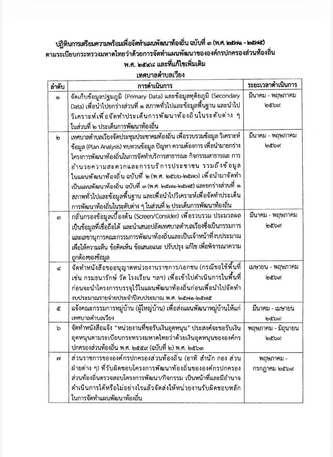 เรื่อง ปฏิทินการเตรียมความพร้อมเพื่อจัดทำแผนพัฒนาท้องถิ่น ฉบับที่ 3 (พ.ศ.2571 – 2575)ตามระเบียบกระทรวงมหาดไทยว่าด้วยการจัดทำแผนพัฒนาขององค์กรปกครองส่วนท้องถิ่น พ.ศ.2548 และที่แก้ไขเพิ่มเติม