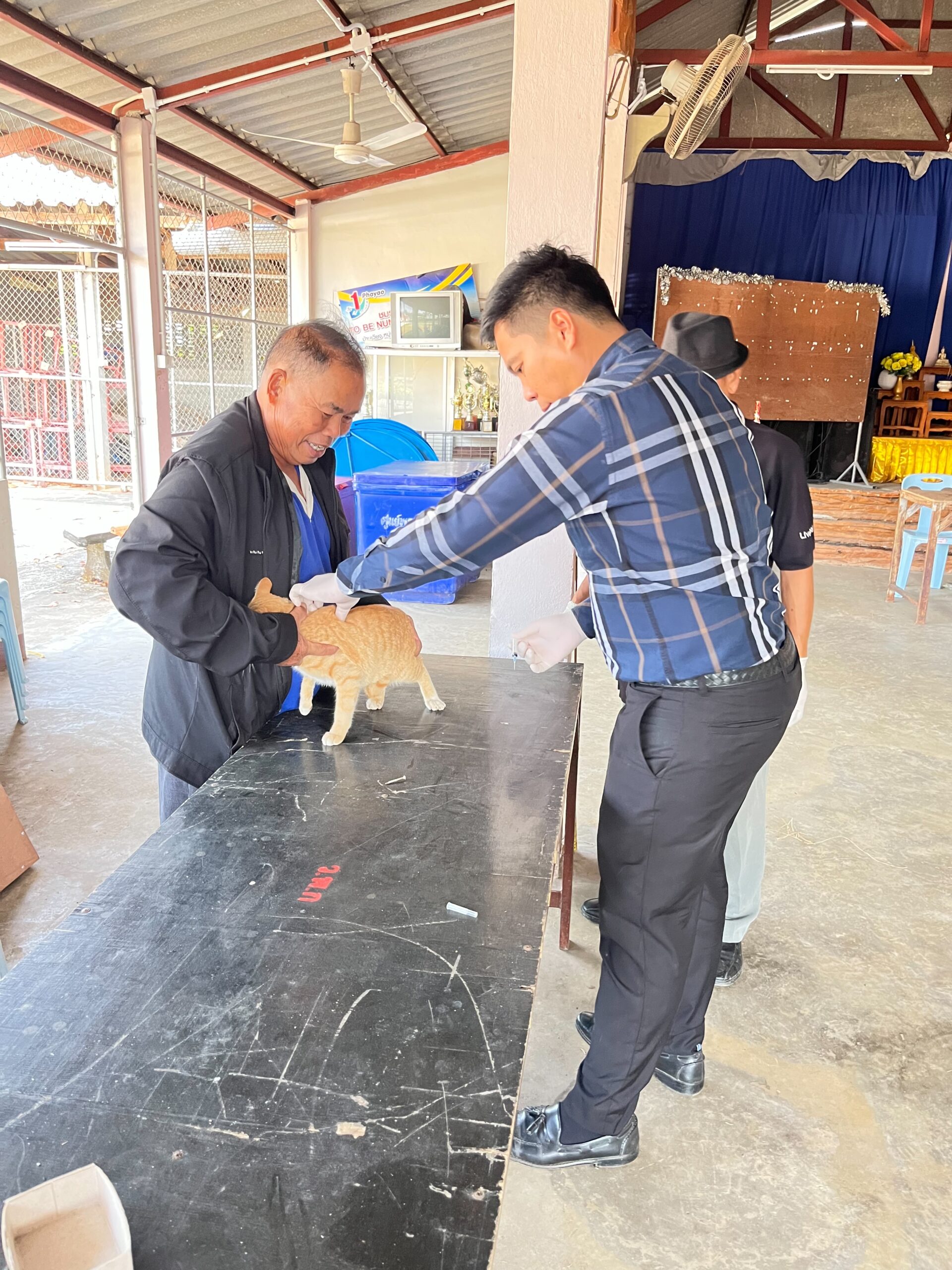 นายสุทธิพงษ์ วงศนันท์ นายกเทศมนตรีตำบลเวียง พร้อมด้วย นายชาตรี นิลคำ ผู้อำนวยการกองสาธารณสุขฯ นางสาวธัญญารัตน์ ธรรมศิริ เจ้าพนักงานสาธารณสุข ร่วมกับปศุสัตว์อำเภอเชียงคำ อาสาปศุสัตว์ประจำหมู่บ้าน เข้าร่วมโครงการสัตว์ปลอดโรค คนปลอดภัยจากโรคพิษสุนัขบ้า ตามพระปณิธานศาสตราจารย์ ดร.สมเด็จพระเจ้าลูกเธอ เจ้าฟ้าจุฬาภรณวลัยลักษณ์ อัครราชกุมารี กรมพระศรีสวางควัฒนวรขัตติยาราชนารี เพื่อฉีดวัคซีนป้องกันโรคพิษสุนัขบ้าสำหรับสัตว์เลี้ยงสุนัขและแมว ประจำปีงบประมาณ พ.ศ. 2569 ณ บ้านเวียง หมู่ที่ 6 และบ้านทราย หมู่ที่ 3 ตำบลเวียง อำเภอเชียงคำ จังหวัดพะเยา