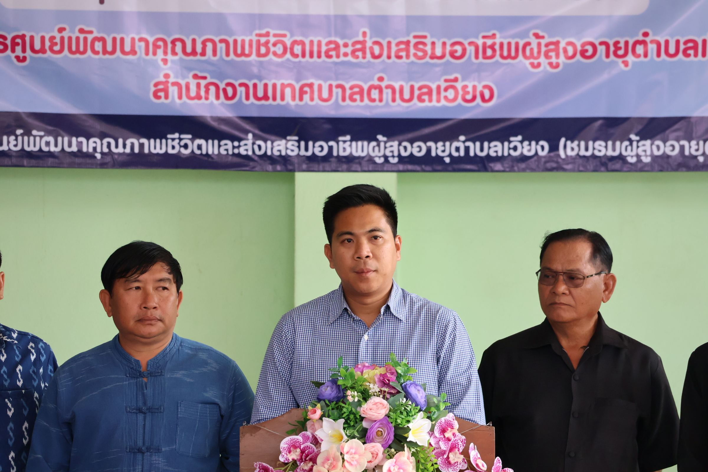 โดยนายสุทธิพงษ์ วงศสนันท์ นายกเทศมนตรีตำบลเวียงเป็นประธานพิธีเปิดพิธี นายถาวร อ่อนนวล ประธานศูนย์พัฒนาคุณภาพชีวิตและส่งเสริมอาชีพผู้สูงอายุตำบลเวียง (ชมรมผู้สูงอายุตำบลเวียง)เป็นผู้กล่าวรายงานในนามผู้จัดโครงการ และคณะ กรรมการศูนย์พัฒนาคุณภาพชีวิตและส่งเสริมอาชีพผู้สูงอายุตำบลเวียง