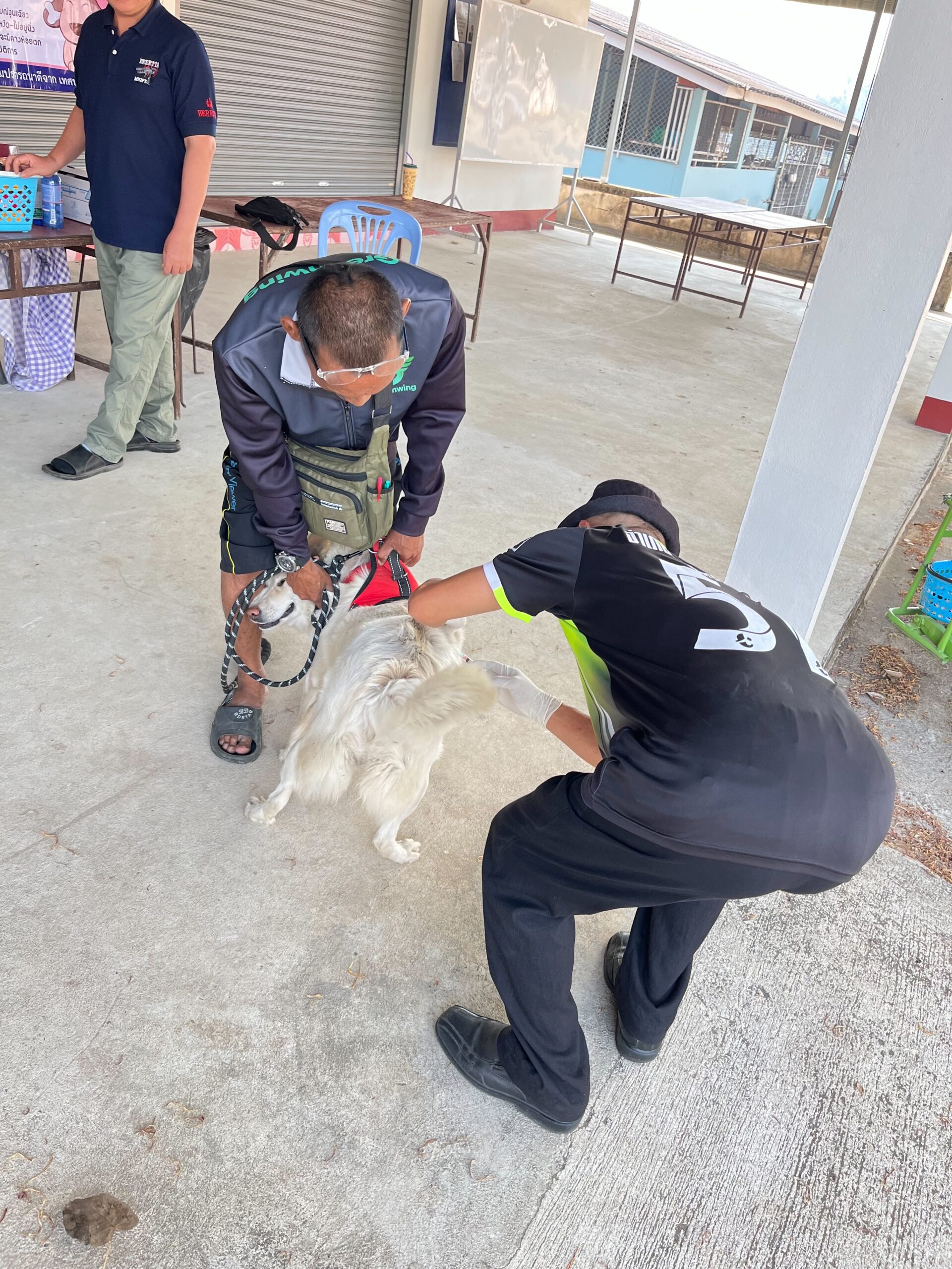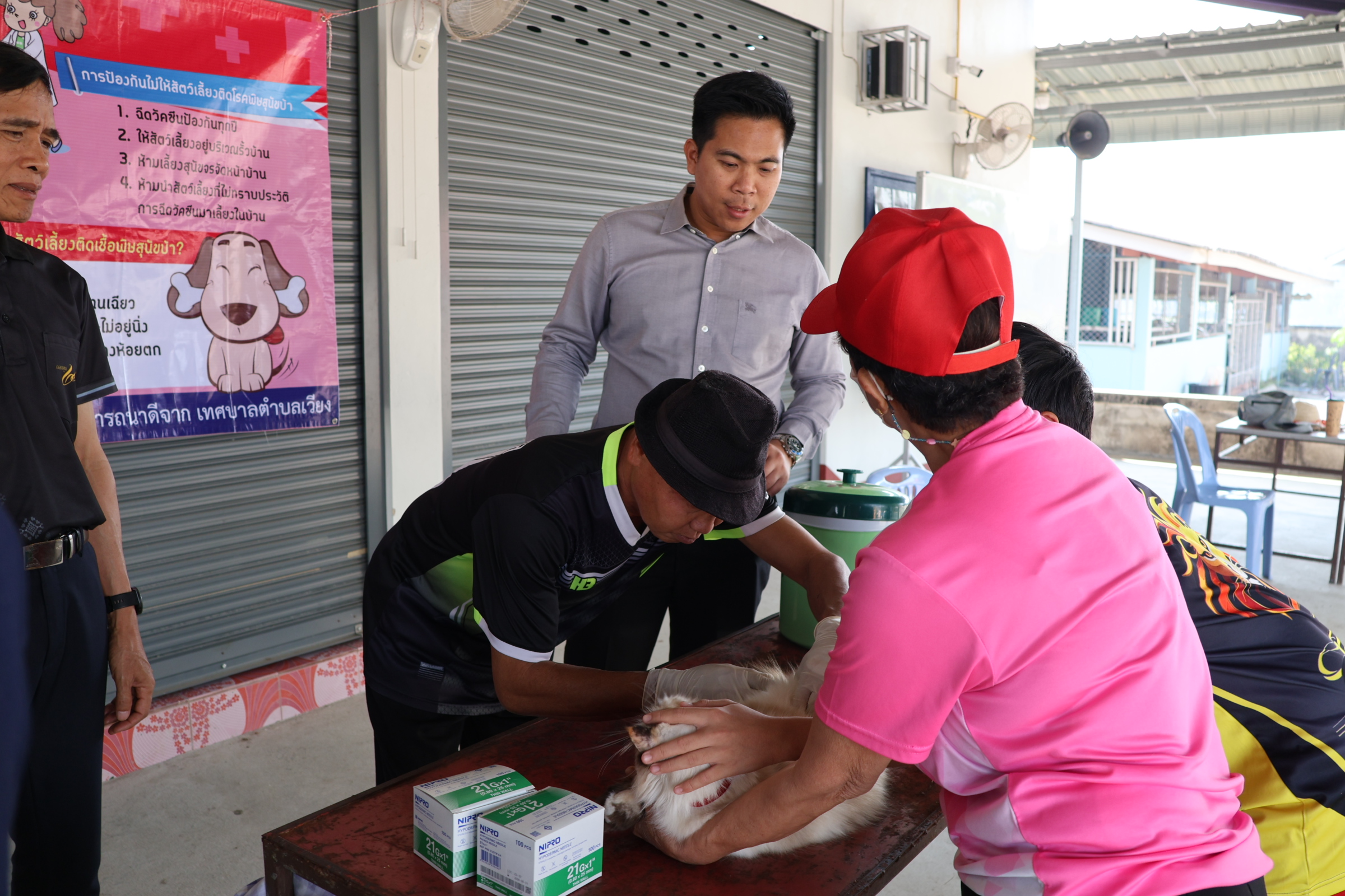 นายสุทธิพงษ์ วงศนันท์ นายกเทศมนตรีตำบลเวียง พร้อมด้วย ส.ต.ท.สำราญ ใจดี นายชาตรี นิลคำ ผู้อำนวยการกองสาธารณสุขฯ และพนักงานเทศบาล เข้าร่วมโครงการสัตว์ปลอดโรค คนปลอดภัยจากโรคพิษสุนัขบ้า ตามพระปณิธานศาสตราจารย์ ดร.สมเด็จพระเจ้าลูกเธอ เจ้าฟ้าจุฬาภรณวลัยลักษณ์ อัครราชกุมารี กรมพระศรีสวางควัฒนวรขัตติยาราชนารี เพื่อฉีดวัคซีนป้องกันโรคพิษสุนัขบ้าสำหรับสัตว์เลี้ยงสุนัขและแมว ประจำปีงบประมาณ พ.ศ. 2569 ณ บ้านดอนไชย หมู่ที่ 8 ตำบลเวียง อำเภอเชียงคำ จังหวัดพะเยา
