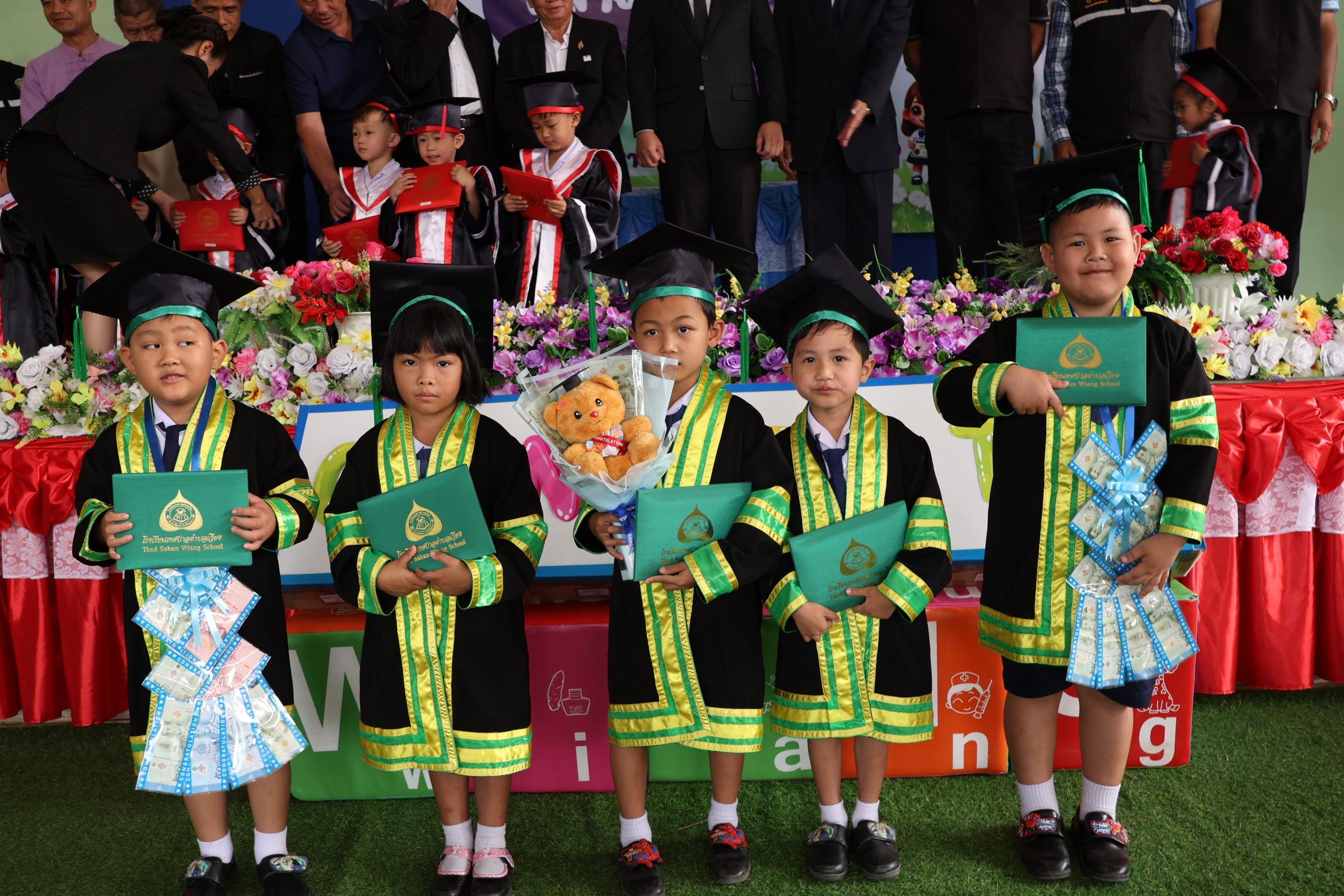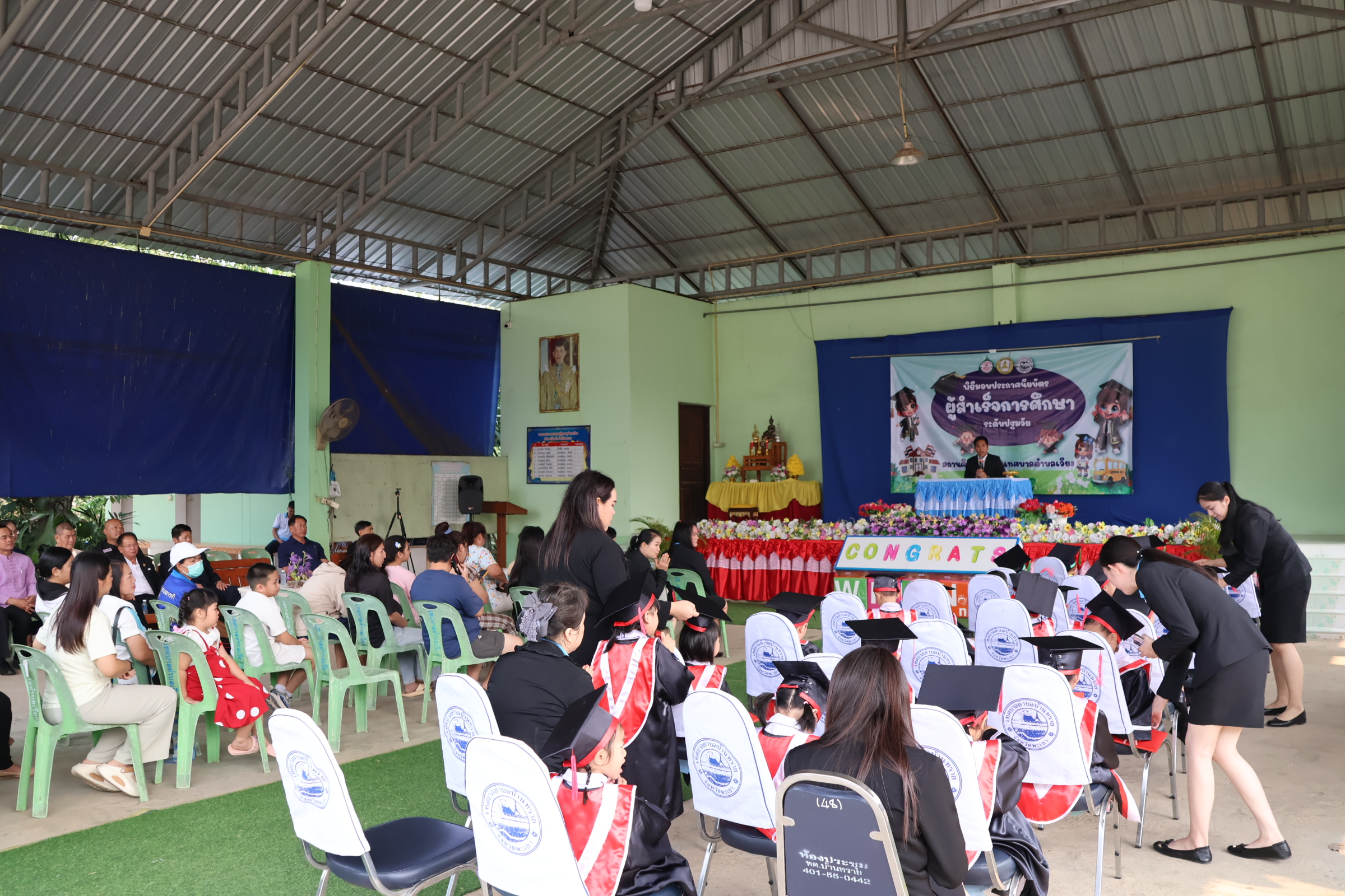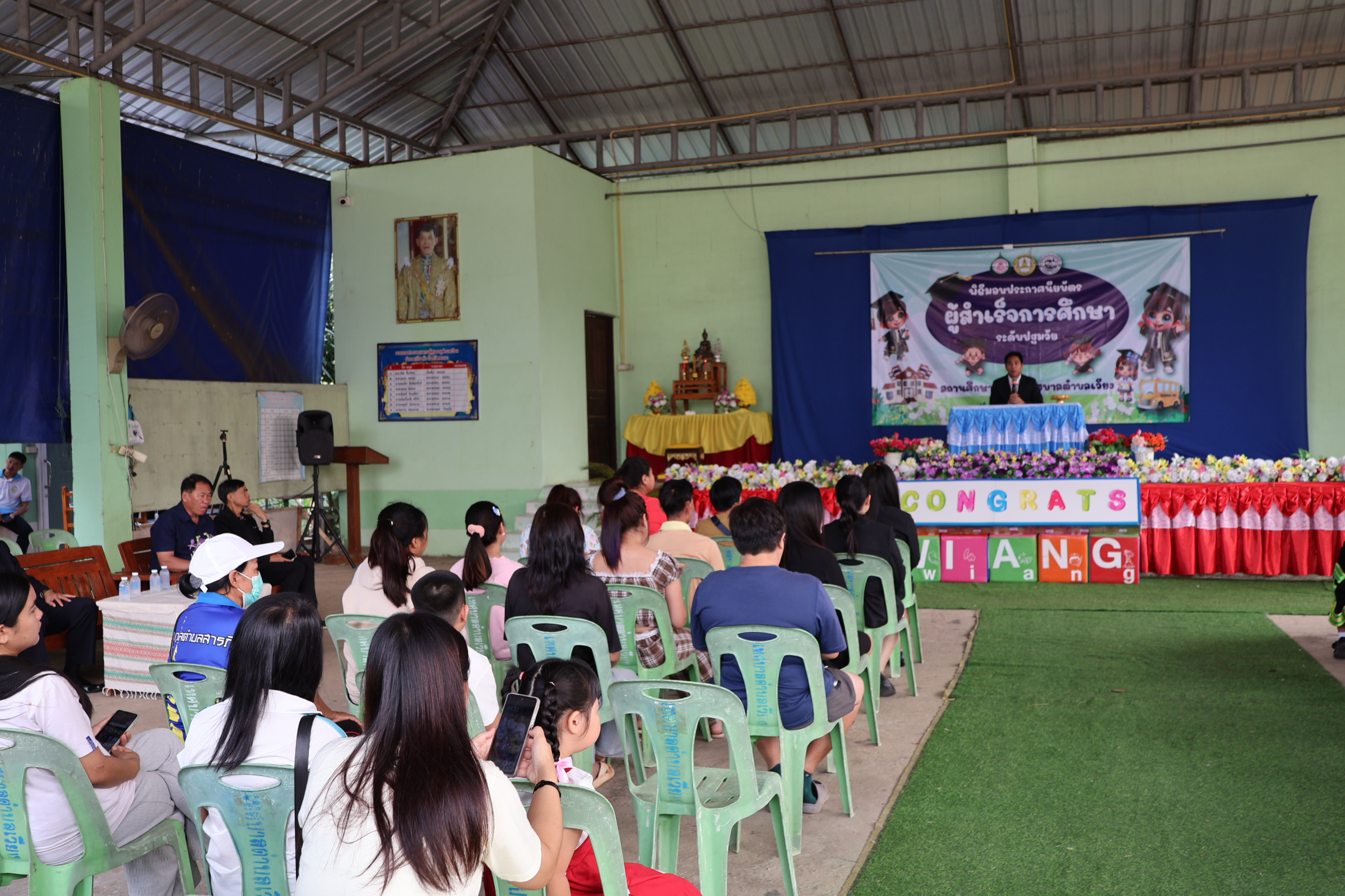 นายสุทธิพงษ์ วงศนันท์ นายกเทศมนตรีตำบลเวียง ประธานในพิธีเปิดโครงการมอบประกาศนียบัตรผู้สำเร็จการศึกษาระดับปฐมวัย ศูนย์พัฒนาเด็กเล็กและโรงเรียนเทศบาลตำบลเวียง ประจำปีการศึกษา 2568 จำนวน 27 คน พร้อมกล่าวให้โอวาทและแสดงความยินดีแก่บัณฑิตน้อยทุกคน โดยมีวัตถุประสงค์เพื่อแสดงความยินดีในความสำเร็จ ของนักเรียน และเป็นการสร้างขวัญกำลังใจให้กับนักเรียน ในการก้าวสู่รั้วสถาบันการศึกษาต่อไปอย่างภาคภูมิ อีกทั้งเป็นการสร้างความสัมพันธ์อันดีระหว่างผู้บริหาร ครู นักเรียน และผู้ปกครอง