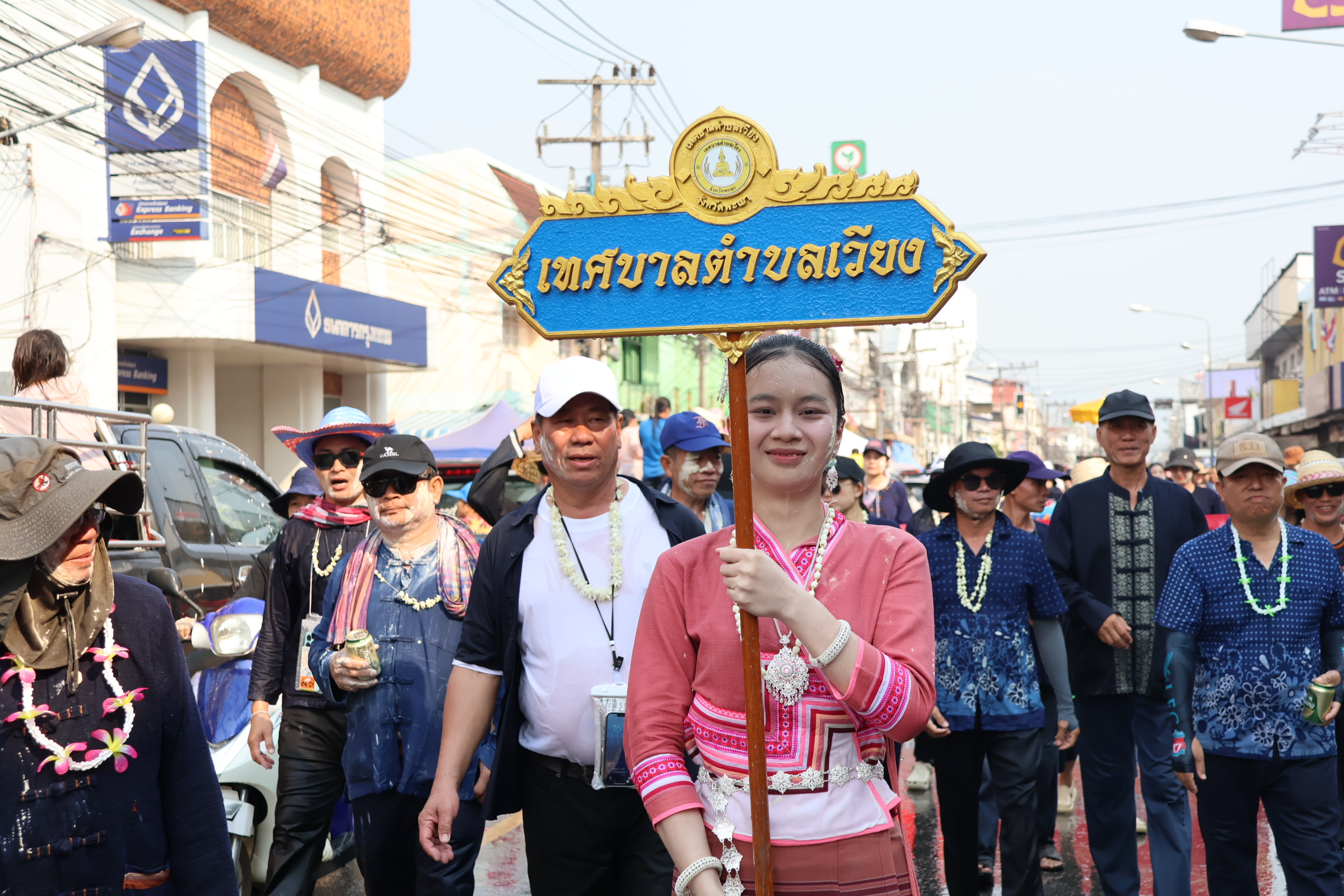 นายสุทธิพงษ์ วงศนันท์ นายกเทศมนตรีตำบลเวียง พร้อมด้วยคณะผู้บริหาร สมาชิกสภา กำนัน/ผู้ใหญ่บ้าน แม่บ้านตำบลเวียง และพนักงานเทศบาลตำบลเวียงร่วมโครงการจัดงานประเพณีสงกรานต์ โดยมีขบวนแห่สรงน้ำพระพุทธรูป “องค์จำลองพระนั่งดิน” และการแสดงของแม่บ้านตำบลเวียง ณ อำเภอเชียงคำ จังหวัดพะเยา