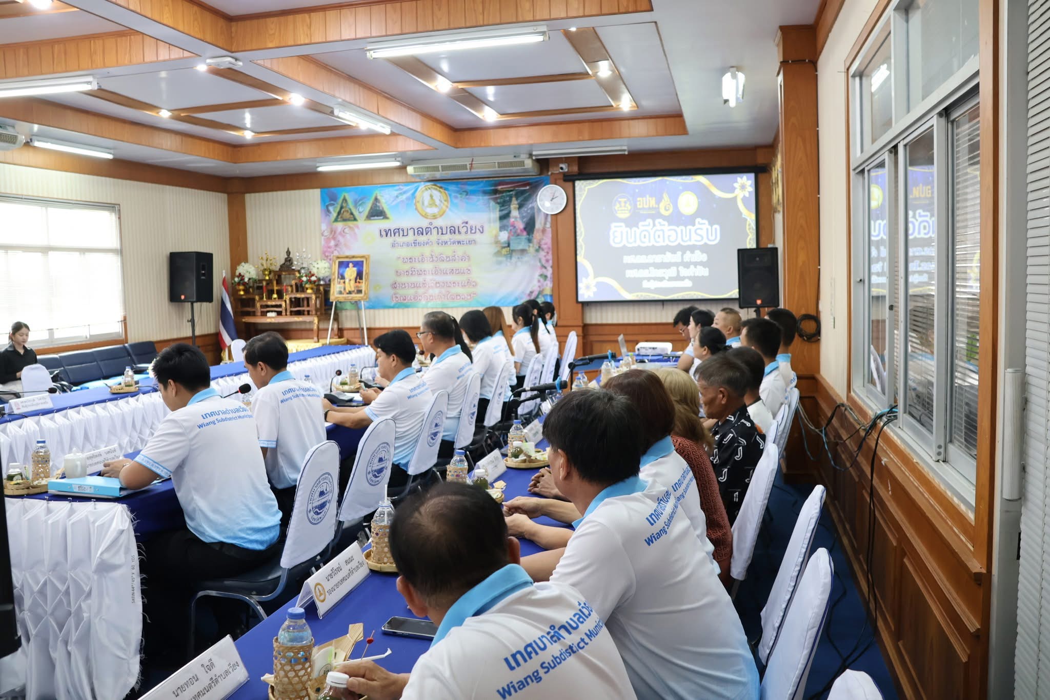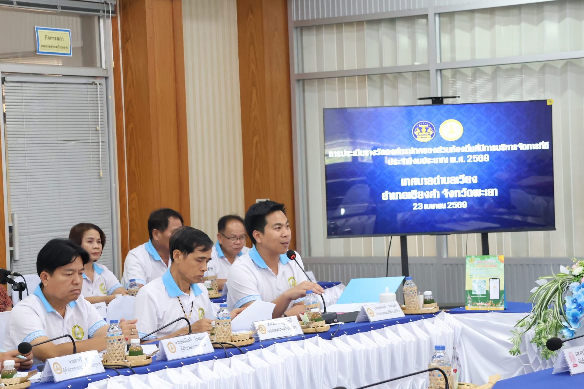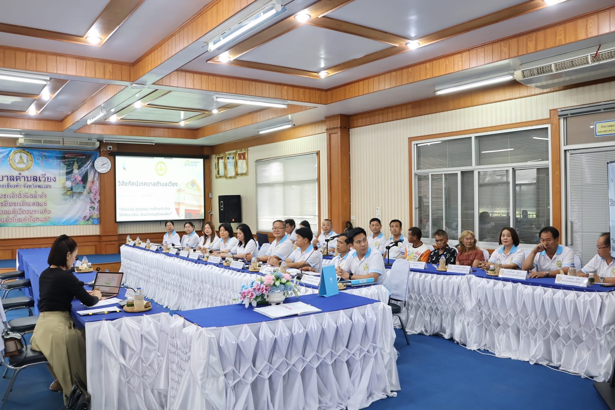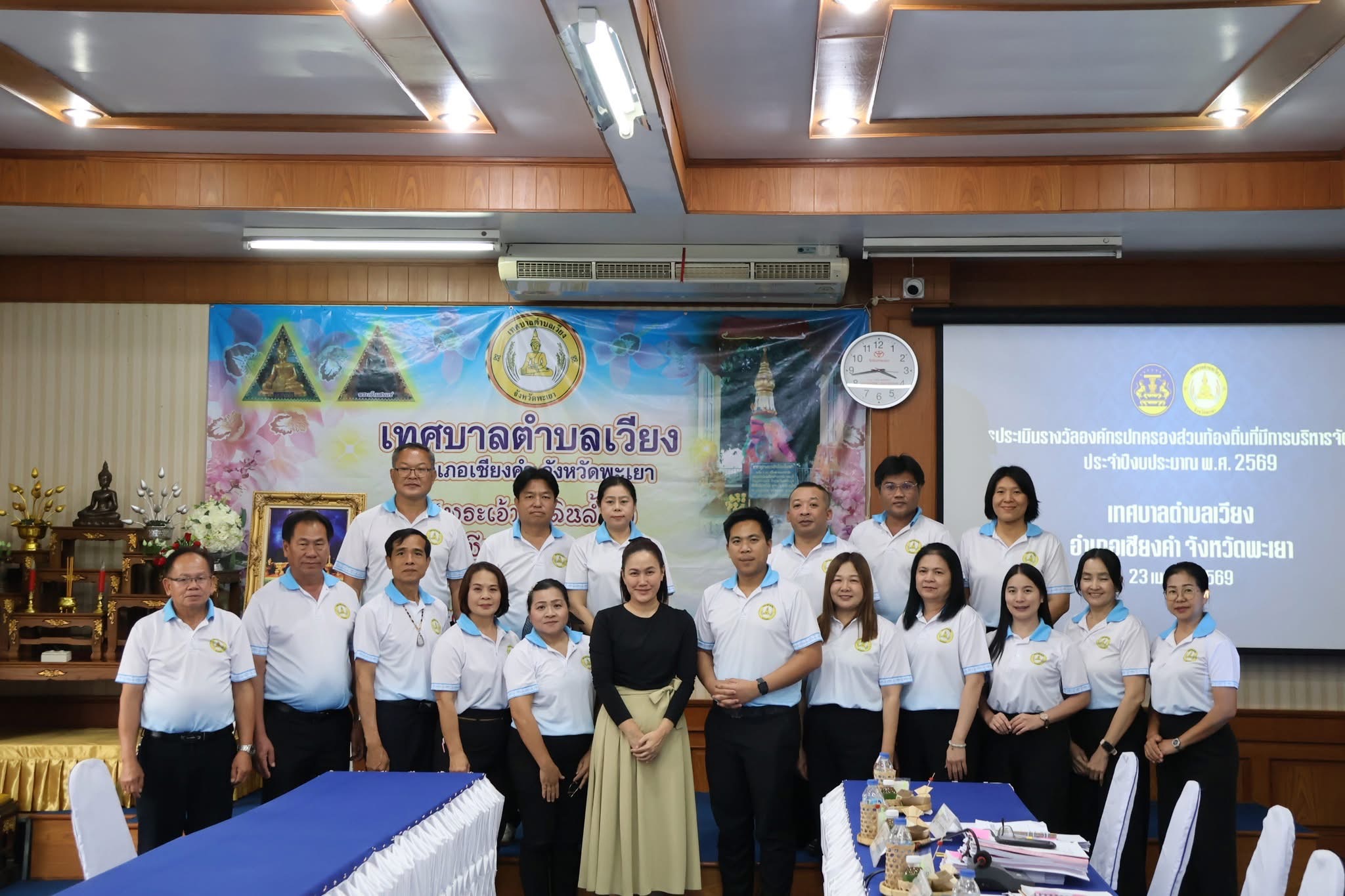 นายสุทธิพงษ์ วงศนันท์ นายกเทศมนตรีตำบลเวียง พร้อมด้วยคณะผู้บริหาร ปลัดเทศบาล หัวหน้าส่วนราชการ และพนักงานเทศบาลตำบลเวียง ให้การต้อนรับ ผู้ช่วยศาสตราจารย์ ดร.ดารารัตน์ คำเป็ง ทีมประเมินภูมิภาคเหนือ จาก ศูนย์บริการวิชาการแห่งจุฬาลงกรณ์มหาวิทยาลัย ในการลงพื้นที่ประเมินเกณฑ์ชี้วัดสำหรับการคัดเลือกองค์กรปกครองส่วนท้องถิ่นที่มีการบริหารจัดการที่ดีประจำปีงบประมาณ พ.ศ 2569 ณ ห้องประชุมเวียงทอง สำนักงานเทศบาลตำบลเวียง และพื้นที่ บ้านพระนั่งดิน หมู่ที่ 7 ตำบลเวียง อำเภอเชียงคำ จังหวัดพะเยา