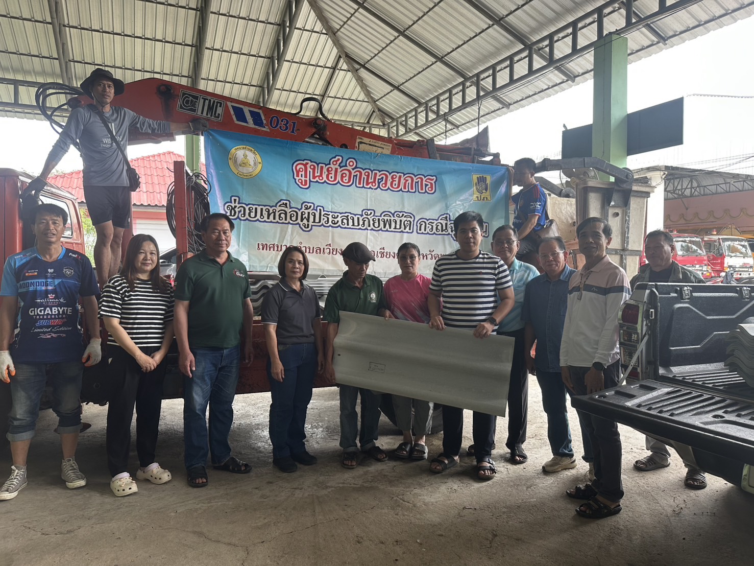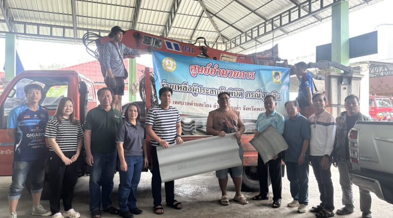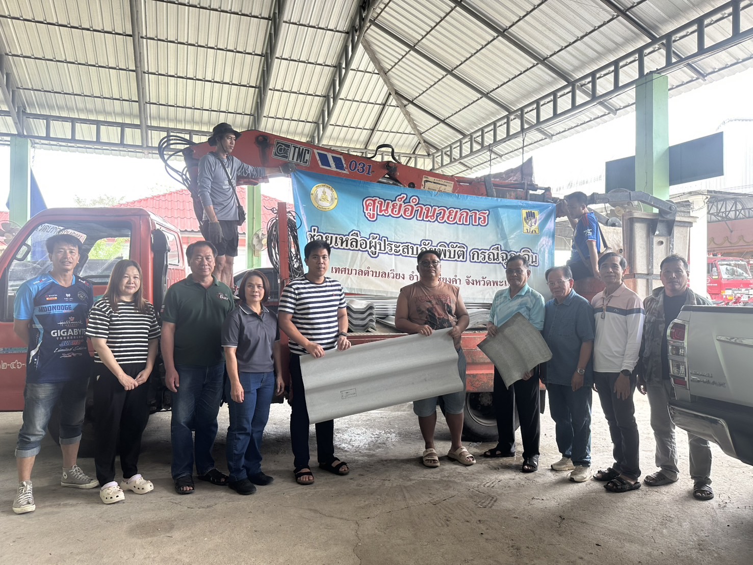 นายสุทธิพงษ์ วงศนันท์ นายกเทศมนตรีตำบลเวียง พร้อมด้วยคณะผู้บริหาร ประธานสภา ปลัดเทศบาล หัวหน้าสำนักปลัด และพนักงานเทศบาลตำบลเวียง มอบวัสดุก่อสร้าง เช่น กระเบื้อง สังกะสี ฯลฯ เพื่อใช้ซ่อมแซมที่อยู่อาศัย ให้กับประชาชนในพื้นที่ตำบลเวียง ที่ได้รับความเสียหาย จากเหตุวาตภัย เมื่อวันที่ 25 เมษายน 2569 ณ อาคารผู้สูงอายุเทศบาลตำบลเวียง อำเภอเชียงคำ จังหวัดพะเยา
