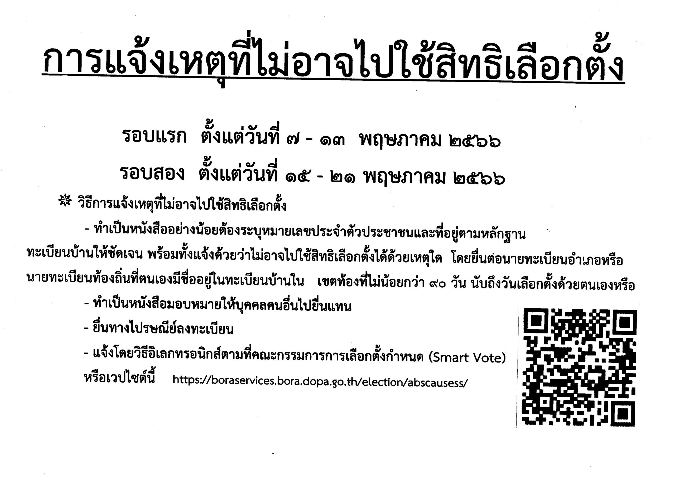 การแจ้งเหตุไม่อาจไปใช้สิทธิเลือกตั้ง