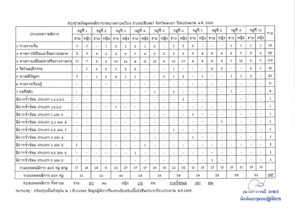 สรุปฐานข้อมูลคนพิการ ประจำปีงบประมาณ พ.ศ.2565