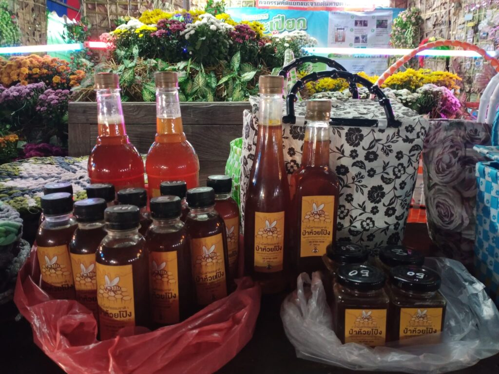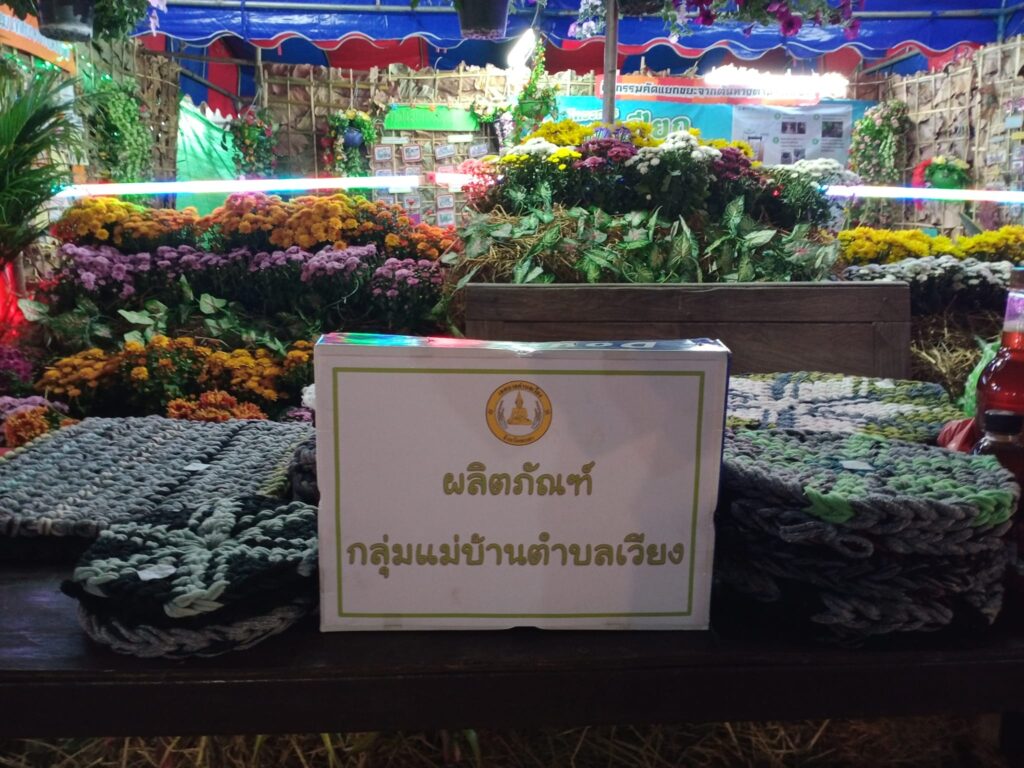 มีผลิตภัณฑ์จาก น้ำผึ้งป่าชุมชนบ้านปี้,พรมเช็ดเท้า, กระเป๋า จากกลุ่มแม่บ้านบ้านเวียง และผลิตภัณฑ์กระเป๋าจากขยะรีไซต์เคิล(ซองกาแฟ)