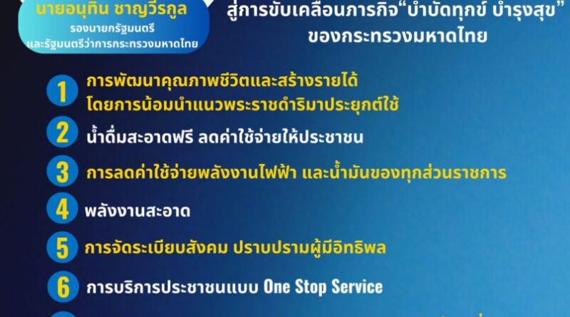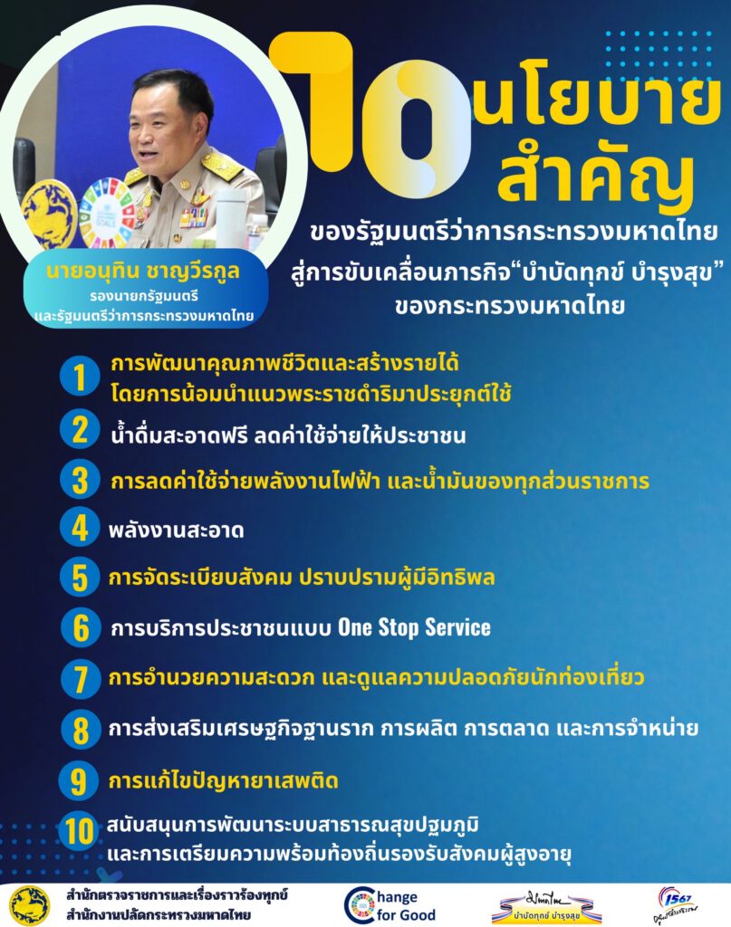 10 นโยบายสำคัญ ของรัฐมนตรีว่าการกระทรวงมหาดไทย