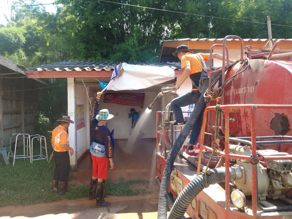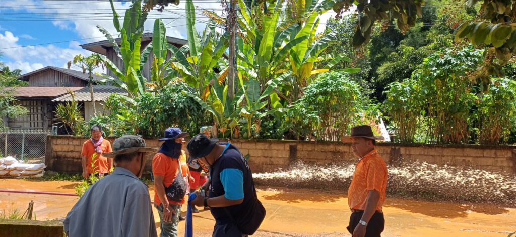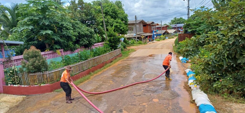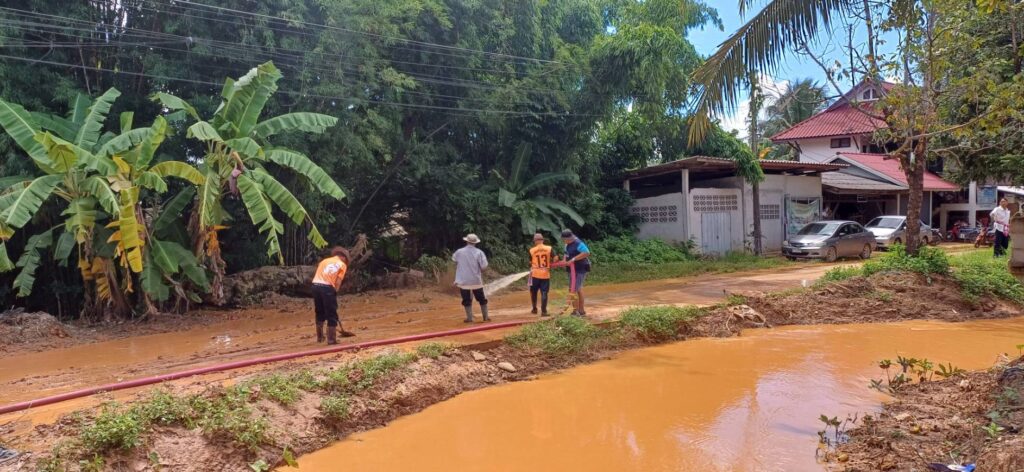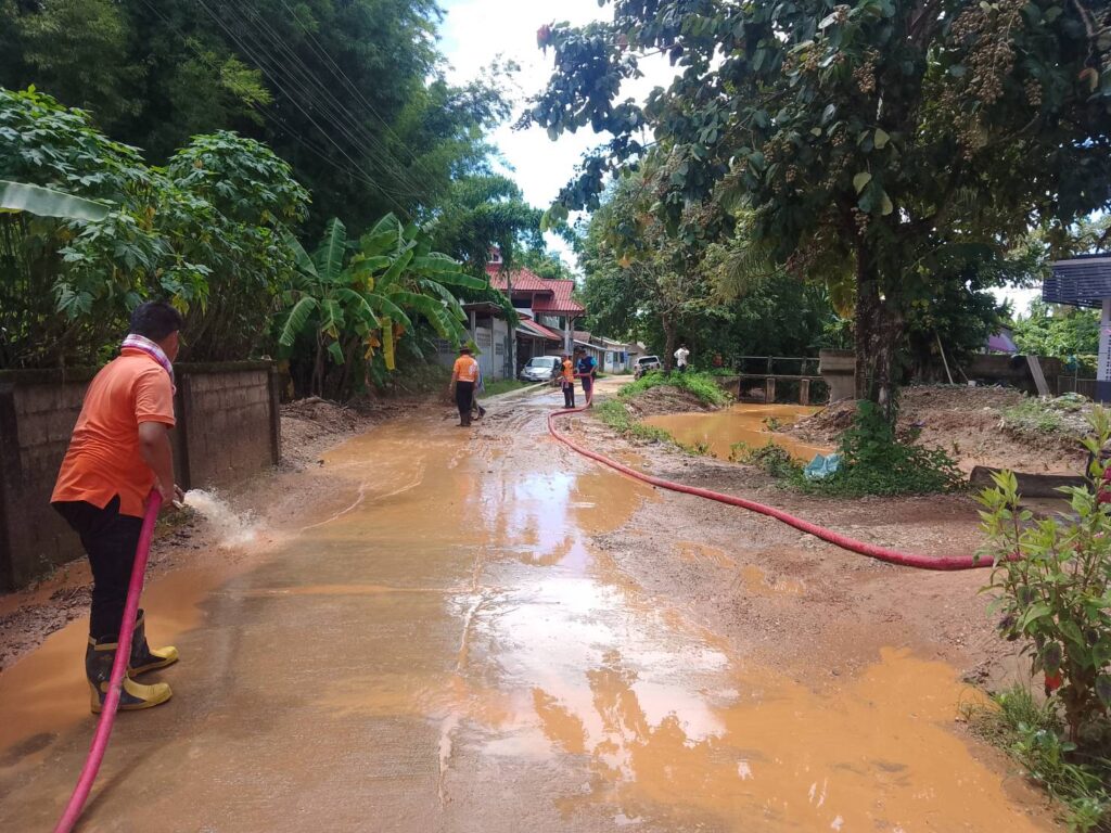 ปฏิบัติหน้าที่ล้างดินโคลนบริเวณถนนบ้านปี้หมู่ที่ 10