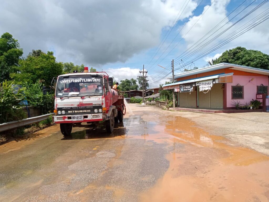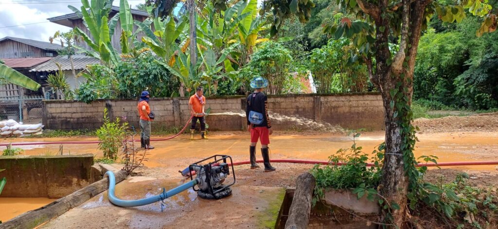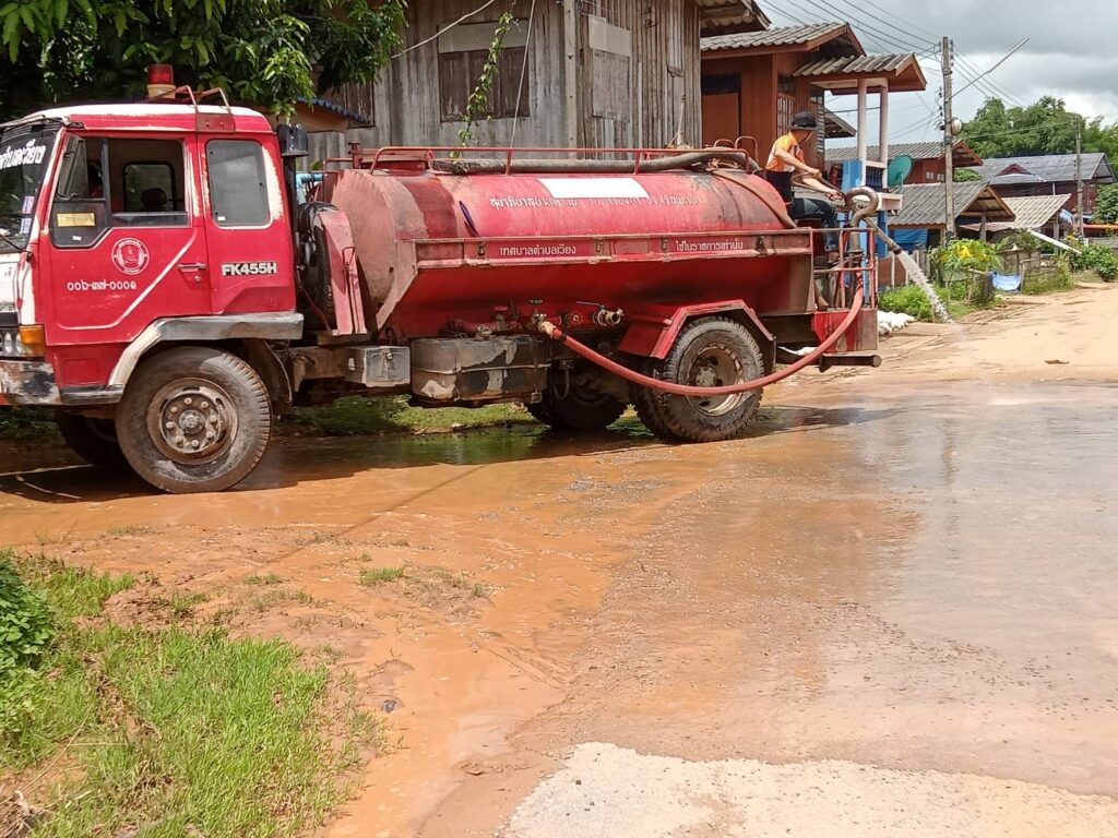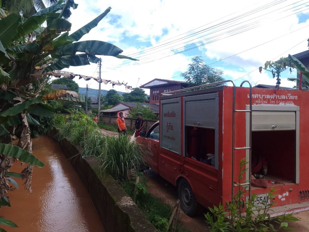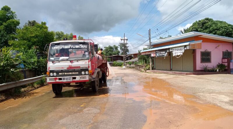ดาบตำรวจทองอยู่ ใจดี นายกเทศมนตรีตำบลเวียง มอบหมาย นายทัตพงศ์ ใจดี รองนายกเทศมนตรีตำบลเวียง พร้อมด้วย สมาชิกสภา เจ้าหน้าที่งานป้องกันและบรรเทาสาธารณภัย ปฏิบัติหน้าที่ล้างดินโคลนบริเวณถนนบ้านปี้หมู่ที่ 10 ตำบลเวียง อำเภอเชียงคำ จังหวัดพะเยา