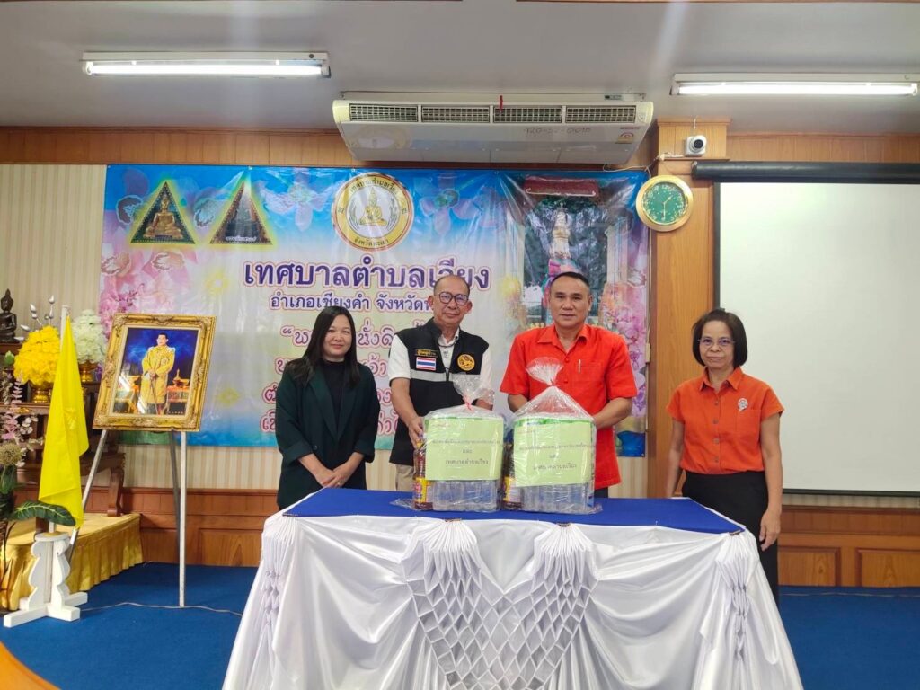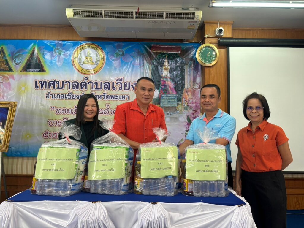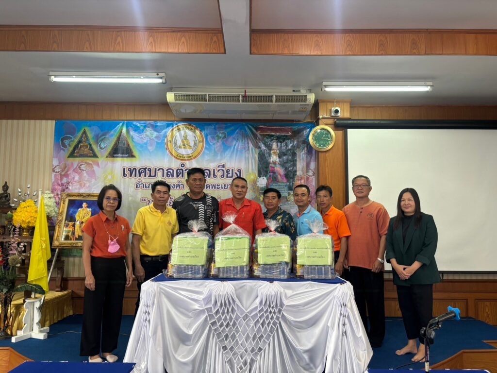 ด.ต. ทองอยู่ ใจดี นายกเทศมนตรีตำบลเวียง พร้อมด้วย คณะผู้บริหาร สมาชิกสภาเทศบาล ปลัดเทศบาล หัวหน้าสำนักปลัด และหัวหน้าฝ่ายบริหารงานทั่วไป มอบสิ่งของอุปโภค บริโภคที่สมาคมสันนิบาตเทศบาลแห่งประเทศไทยสนับสนุนงบประมาณ จำนวน 20 ชุด ให้แก่กำนัน/ผู้ใหญ่บ้าน ในเขตเทศบาลตำบลเวียง เพื่อส่งมอบต่อให้กับผู้ที่ได้รับผลกระทบ จากเหตุการณ์อุทกภัย ในพื้นที่ต่อไป