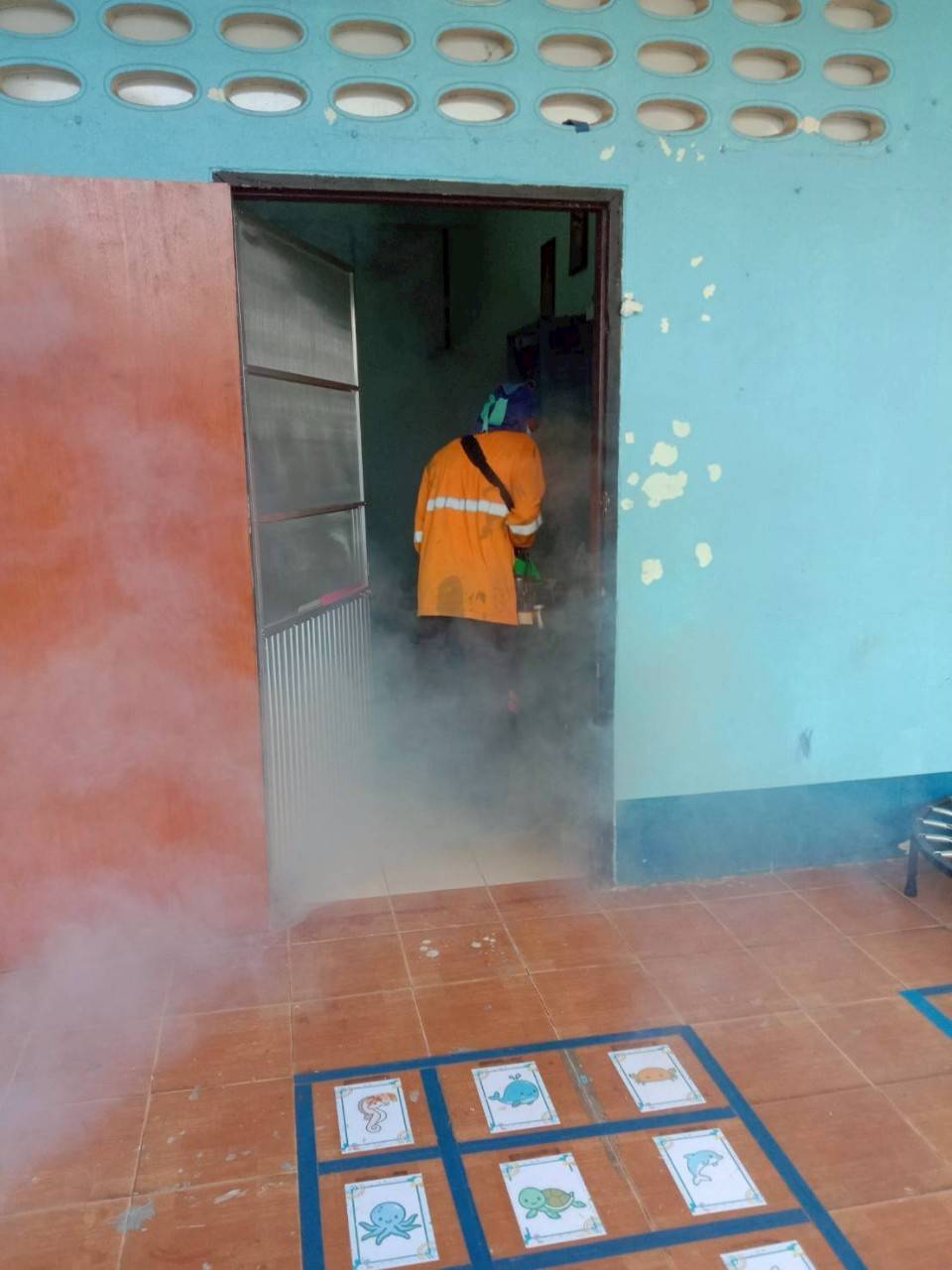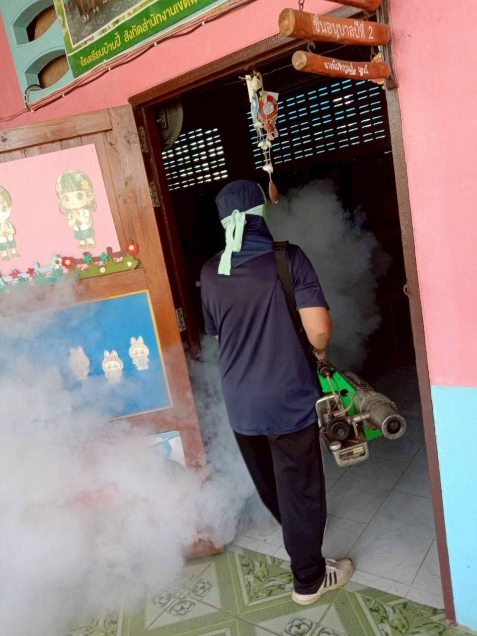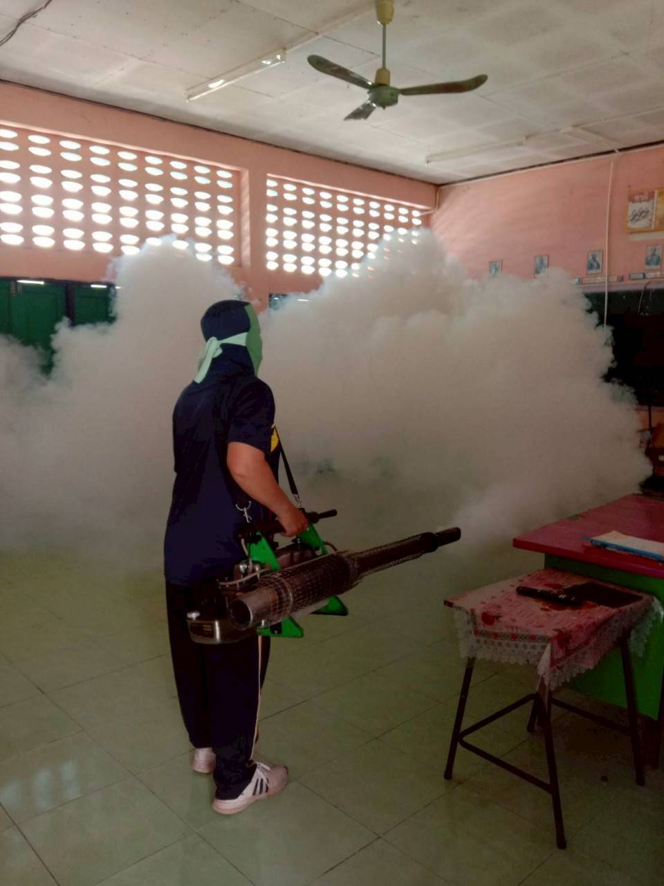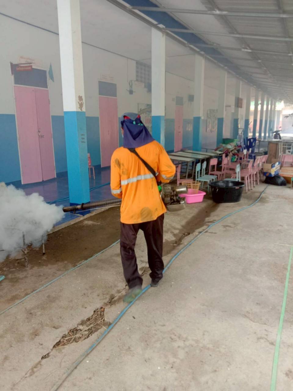 กองสาธารณสุขและสิ่งแวดล้อม เทศบาลตำบลเวียง ดำเนินกิจกรรมควบคุมป้องกันไข้เลือดออก พ่นหมอกควันในสถานศึกษาในเขตเทศบาลตำบลเวียงก่อนเปิดภาคเรียน