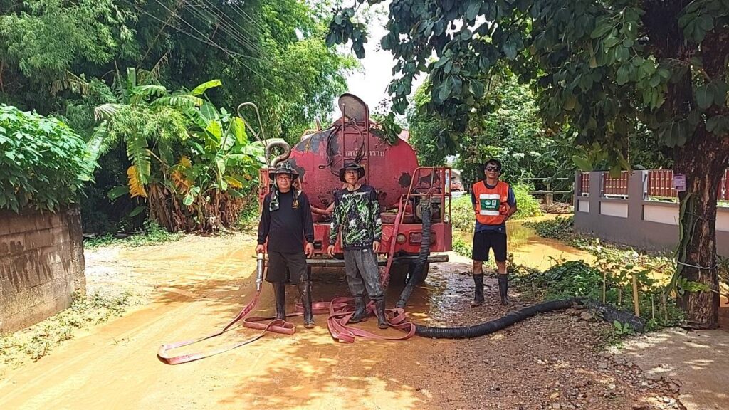 วันที่ 13 กรกฎาคม 2568 เวลา 09.00 น. เทศบาลตำบลเวียง โดยการนำของ นายสุทธิพงษ์ วงศนันท์ นายกเทศมนตรีตำบลเวียง พร้อมด้วย คณะผู้บริหาร สมาชิกสภา เจ้าหน้าที่ป้องกันและบรรเทาสาธารณภัย ได้นำรถบรรทุกน้ำ เข้าช่วยเหลือล้าง ทำความสะอาดบ้านพักอาศัย และถนน ในพื้นที่ หมู่ที่ 10 เพื่อช่วยบรรเทาความเดือดร้อนของประชาชน ลดผลกระทบจากสถานการณ์น้ำเอ่อล้นตลิ่ง เข้าท่วมบ้านเรือน ถนน ได้รับความเสียหาย เมื่อคืนที่ผ่านมา พร้อมได้เฝ้าระวังติดตามระดับน้ำ เตรียมความพร้อมด้านกำลังพลและอุปกรณ์ ให้สามารถช่วยเหลือประชาชนได้ทันที อีกทั้ง ขอให้ประชาชนระมัดระวังภัยสุขภาพที่อาจทำให้เกิดอันตรายและได้รับบาดเจ็บ เช่น การจมน้ำ ไฟฟ้าดูด ไฟฟ้าช็อต และสัตว์มีพิษกัดต่อย