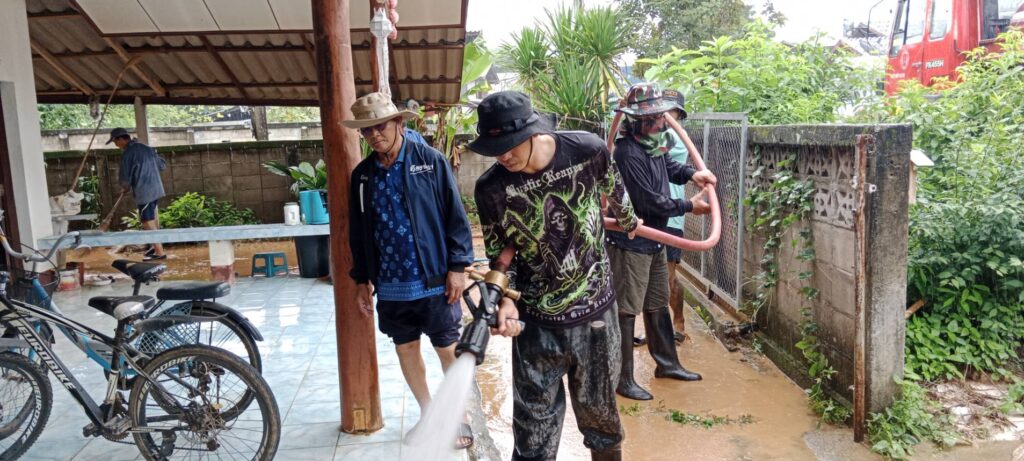 เทศบาลตำบลเวียง เข้าช่วยเหลือล้าง ทำความสะอาดบ้านพักอาศัย และถนน ในพื้นที่ หมู่ที่ 10