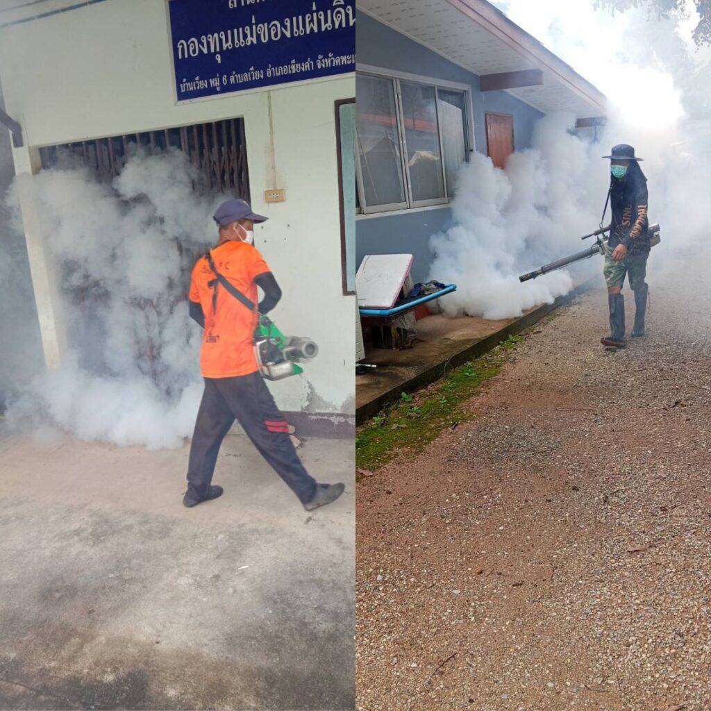 ควบคุมโรคไข้เลือดออก โดยการพ่นหมอกควันบริเวณโดยรอบหมู่บ้าน บ้านเวียง หมู่ 6 ครั้งที่ 2 เพื่อควบคุมการระบาดของโรคไข้เลือดออก