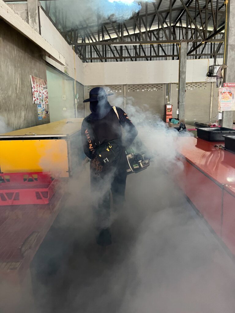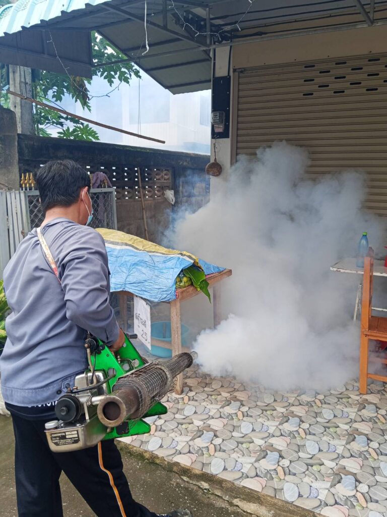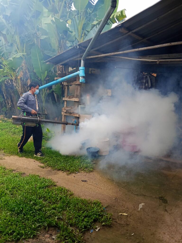 โดยการพ่นหมอกควันบริเวณบ้านผู้ป่วย (บ้านไชยพรม หมู่ที่ 5) ตำบลเวียง อำเภอเชียงคำ จังหวัดพะเยา และบริเวณโดยรอบรัศมี 100 เมตร ครั้งที่ 2 ตามมาตรการ 1-3-7