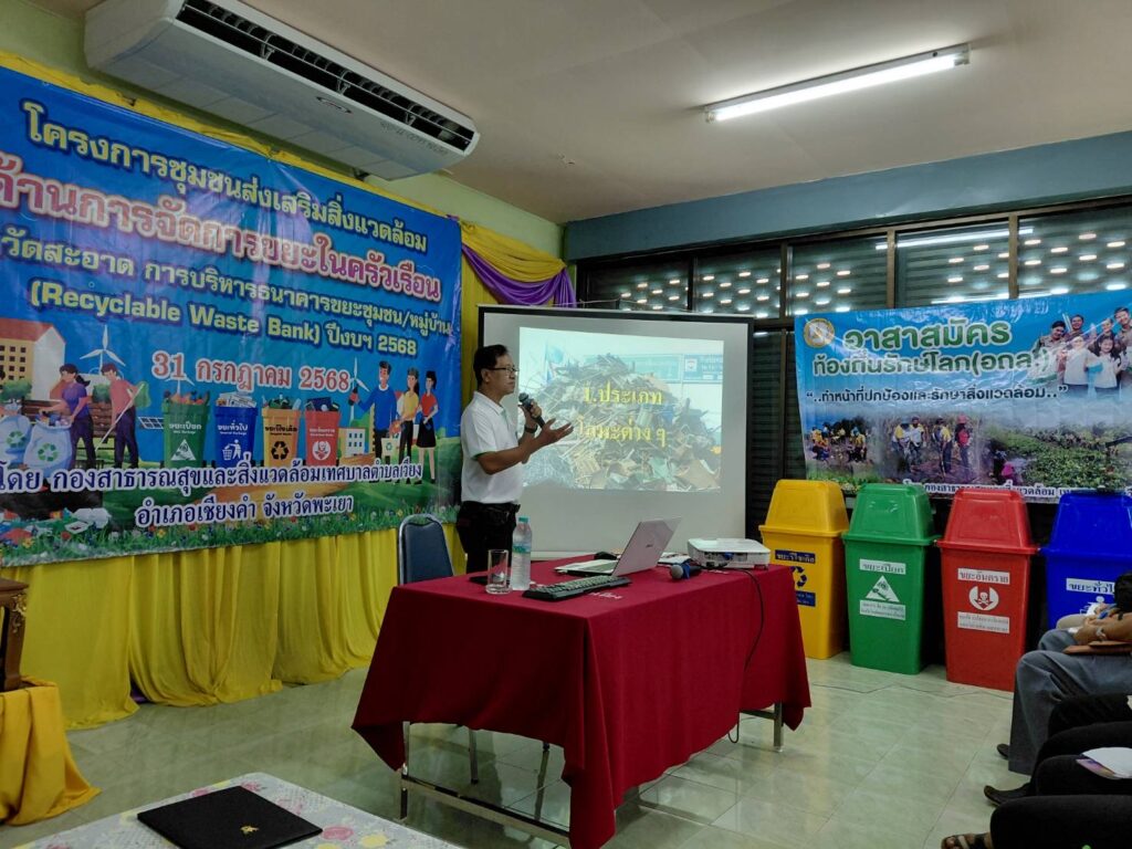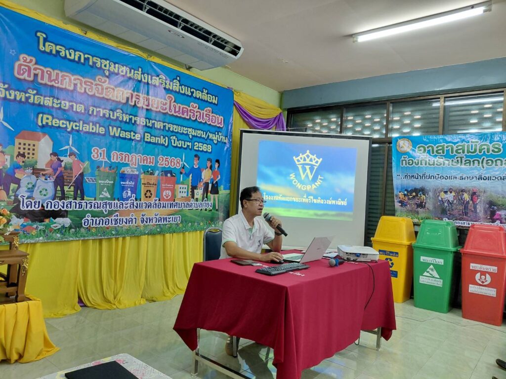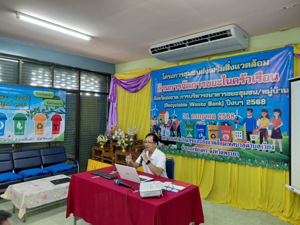 นายสุทธิพงษ์ วงศนันท์ นายกเทศมนตรีตำบลเวียง เป็นประธานพิธีเปิดโครงการชุมชนส่งเสริมสิ่งแวดล้อมด้านการจัดการขยะในครัวเรือน “จังหวัดสะอาด” ปีงบประมาณ 2568 พร้อมทั้งคณะผู้บริหาร สมาชิกสภา คณะกรรมการบริหารธนาคารขยะชุมชน/หมู่บ้าน (Recyclable Waste Bank) อาสาสมัครท้องถิ่นรักษ์โลก และกลุ่มแม่บ้าน จำนวน 70 คน โดยมีวัตถุประสงค์เพื่อสร้างจิตสำนึกในการอนุรักษ์ทรัพยากรและสิ่งแวดล้อมในชุมชนการพัฒนาสิ่งแวดล้อมให้น่าอยู่ สะอาด ปลอดภัยไร้มลพิษ โดยเริ่มจากที่ครัวเรือน, เพื่อส่งเสริมการคัดแยกขยะ ลดปริมาณขยะ ร่วมถึงการนำขยะอินทรีย์มาใช้ประโยชน์ 3Rs, เพื่ออบรมให้ความรู้เรื่องการบริหารจัดการขยะเปียก กับอาสาสมัครท้องถิ่นรักษ์โลก แกนนำครัวเรือน, ส่งเสริมให้ชุมชนหมู่บ้านดำเนินการจัดตั้งธนาคารขยะเพื่อขับเคลื่อนนโยบายการจัดการขยะมูลฝอยชุมชน (Recyclable Waste Bank) ณ สำนักงานเทศบาลตำบลเวียง อำเภอเชียงคำ จังหวัดพะเยา #วันอนามัยสิ่งแวดล้อมไทย #ThaiEnvironmentHealthDay2025 #กรมอนามัย