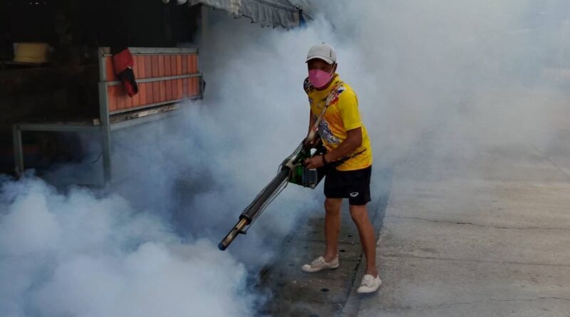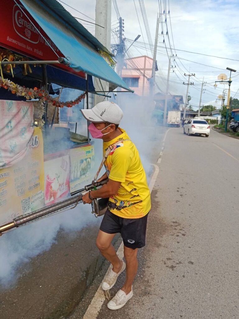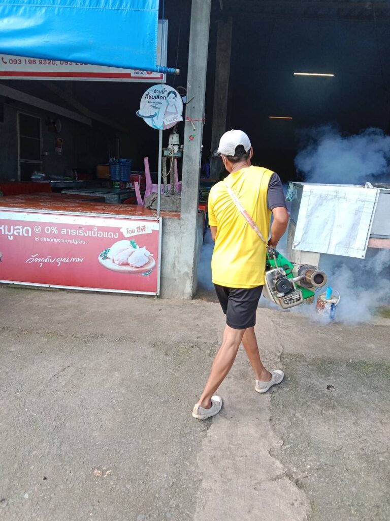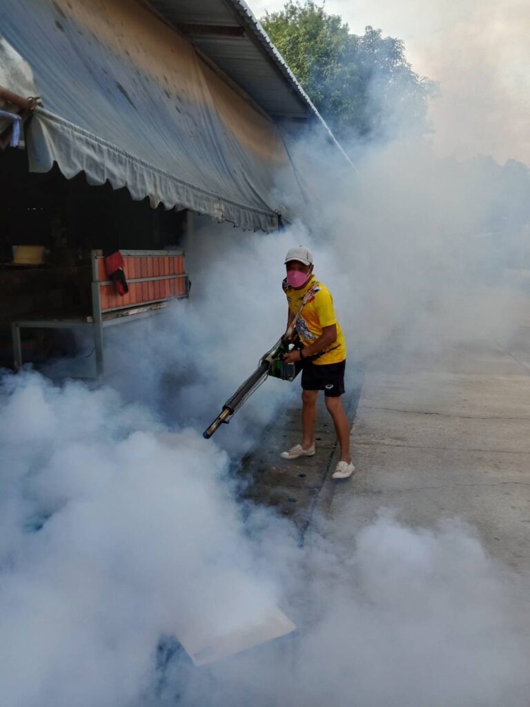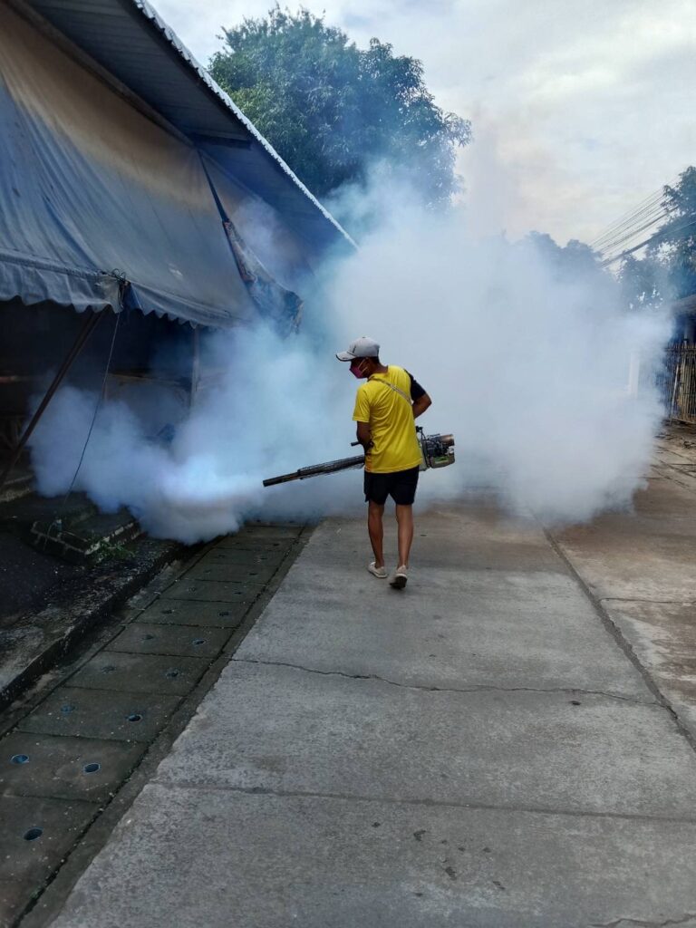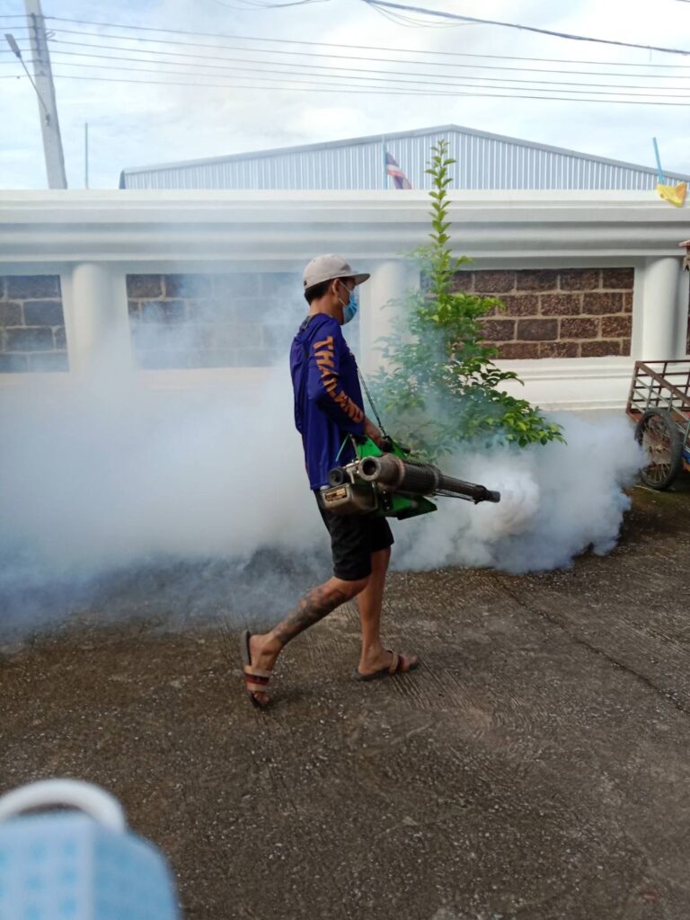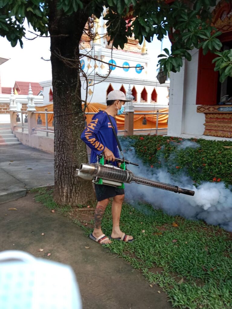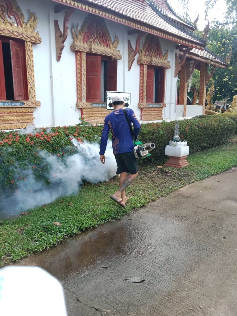 พ่นหมอกควันบริเวณบ้านผู้ป่วย (บ้านไชยพรม ม.5) และบริเวณโดยรอบรัศมี 100 เมตร ครั้งที่ (3)
