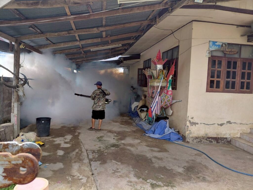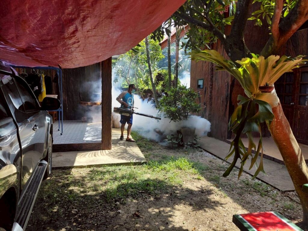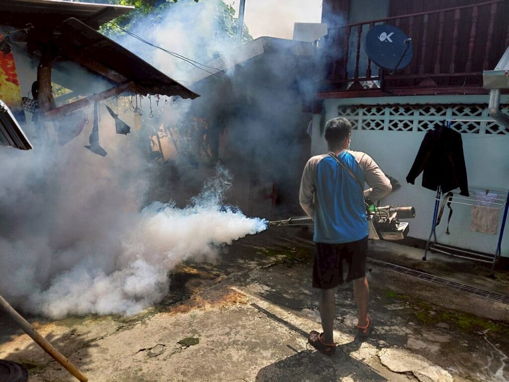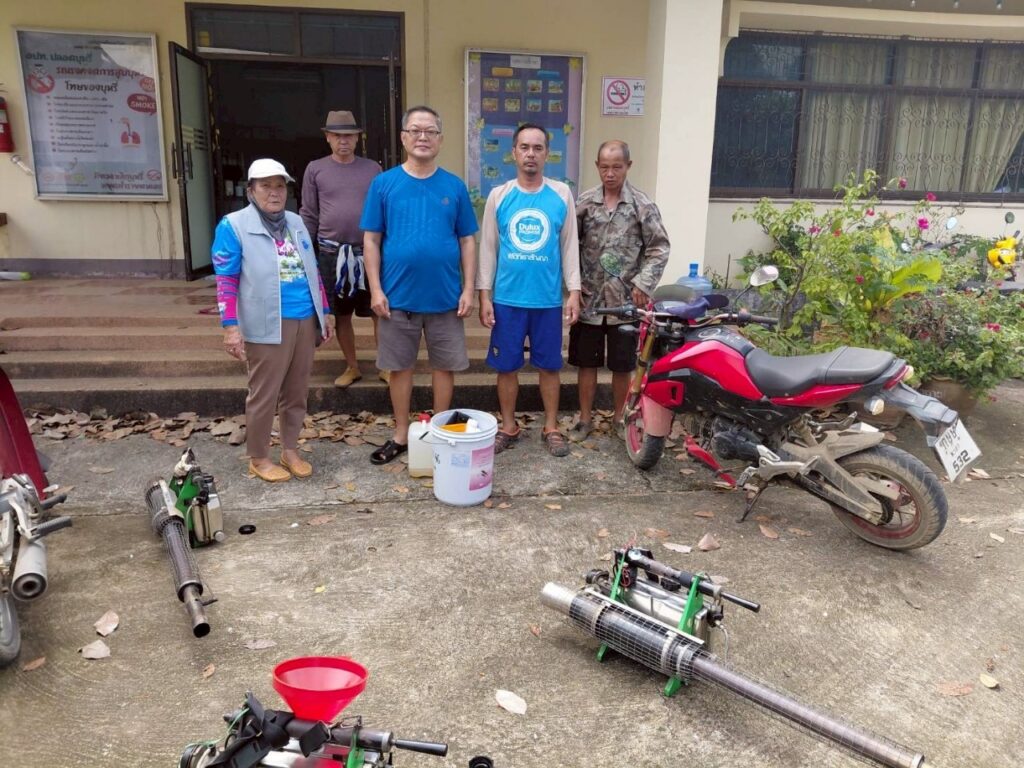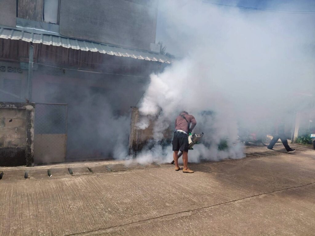 พ่นหมอกควันบริเวณบ้านผู้ป่วย (บ้านพระนั่งดิน ม.7) และบริเวณโดยรอบรัศมี 100 เมตร ครั้งที่ (1)