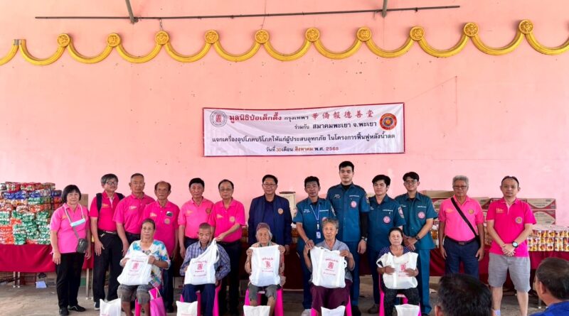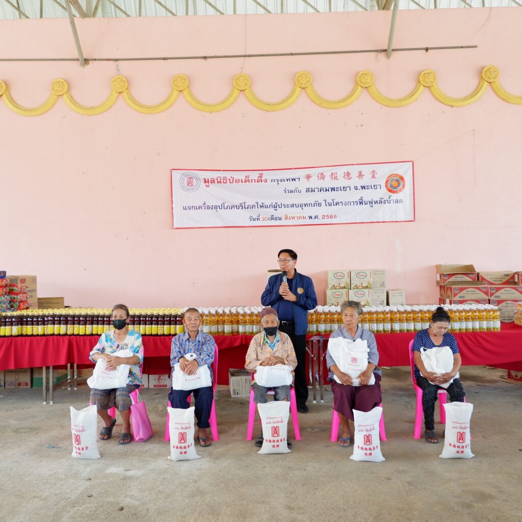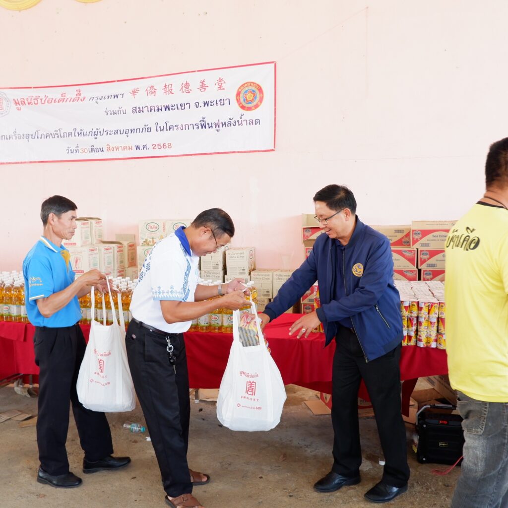 มูลนิธิป่อเต็กตึ๊ง (สมาคมพะเยา จังหวัดพะเยา) มอบสิ่งของให้กับผู้ประสบอุทกภัยของตำบลเวียง (โครงการฟื้นฟูหลังน้ำลด) ณ อาคารอเนกประสงค์ เทศบาลตำบลเวียง อำเภอเชียงคำ จังหวัดพะเยา