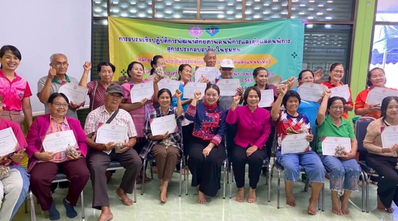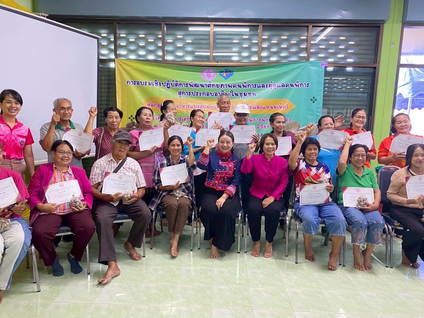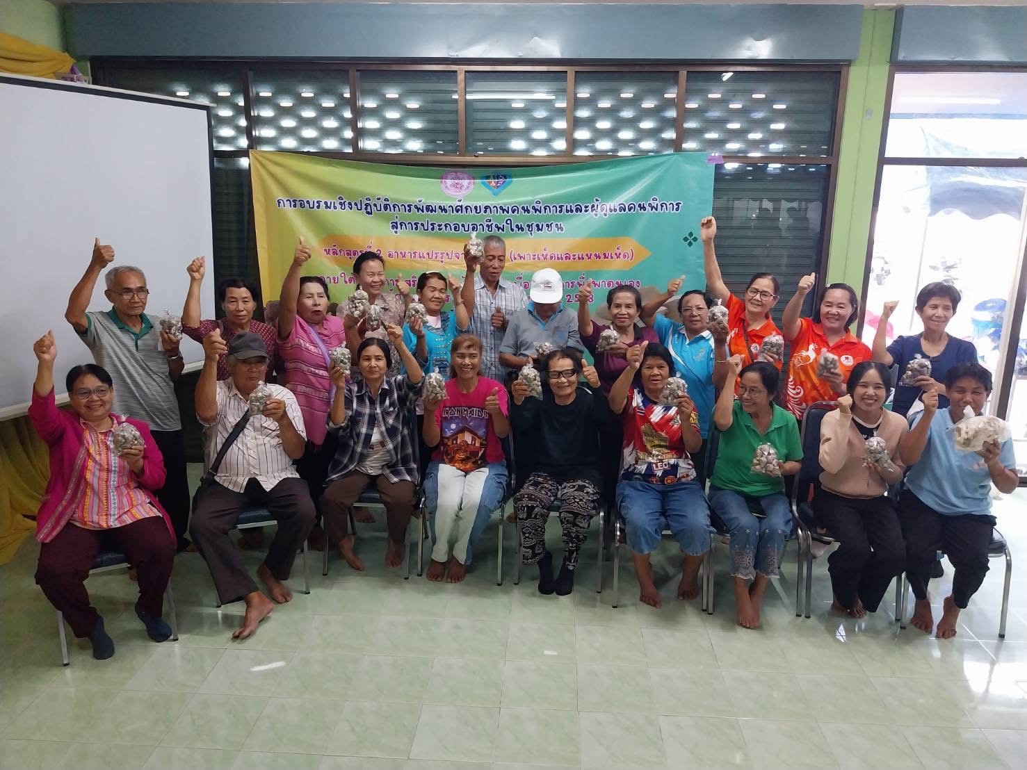 ปิดโครงการอบรมเชิงปฏิบัติการการพัฒนาศักยภาพคนพิการและผู้ดูแลคนพิการสู่การประกอบอาชีพในชุมชนหลักสูตรที่ 2 อาหารแปรรูปจากเกษตร (เพาะเห็ดและแหนมเห็ด) รุ่นที่ 3 ห้องประชุมเวียงเงิน ชั้น 1 สำนักงานเทศบาลตำบลเวียง