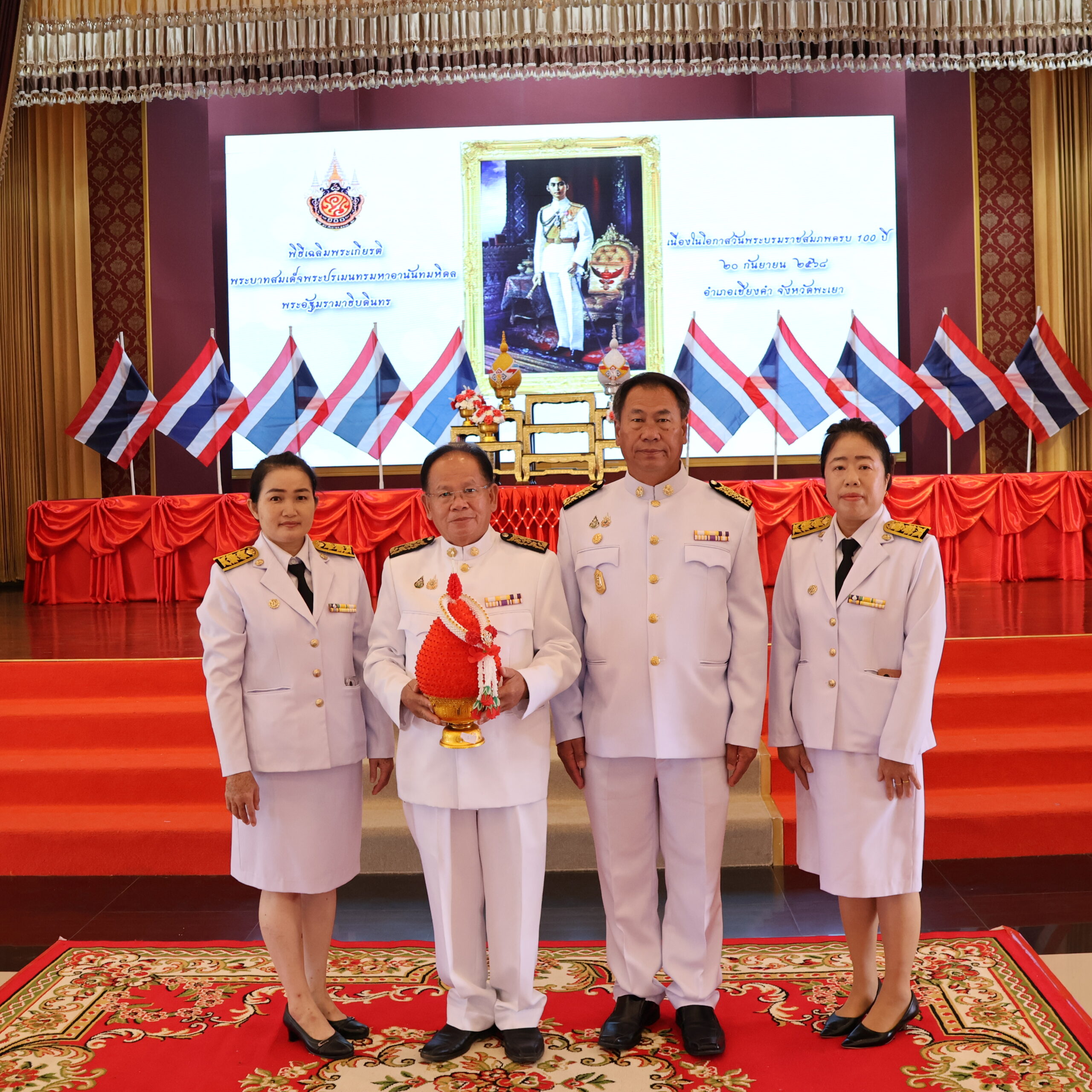 กิจกรรมเฉลิมพระเกียรติพระบาทสมเด็จพระปรเมนทรมหาอานันทมหิดล พระอัฐมรามาธิบดินทร เนื่องในโอกาสวันพระบรมราชสมภพครบ 100 ปี ณ หอประชุมโรงเรียนเชียงคำวิทยาคม อำเภอเชียงคำ จังหวัดพะเยา